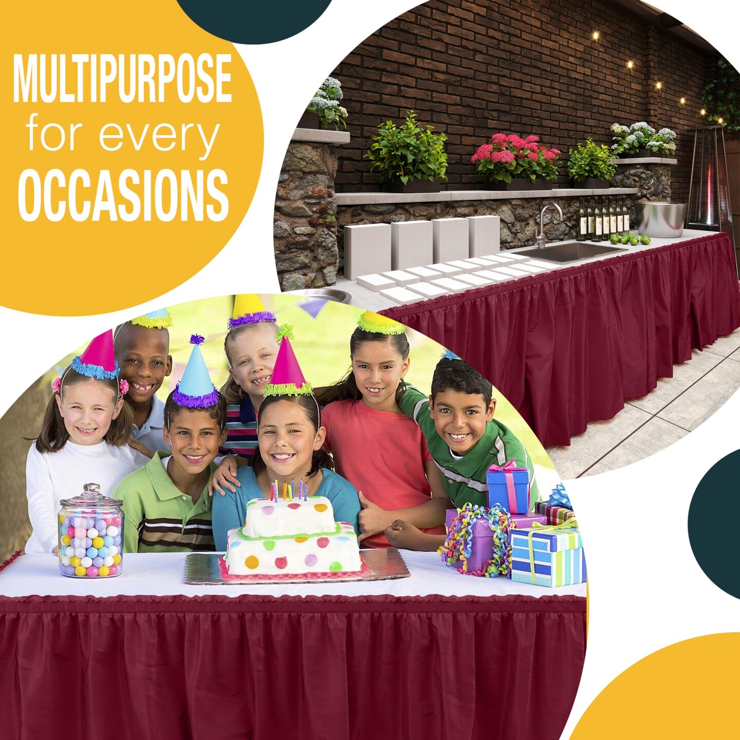 Ruffle Disposable Table Skirt 14 Ft Long Pleated Table Skirts with Adhesive Strip – Fits 6ft+ Rectangle or Round Tables – Ideal for Birthday Parties, Gender Reveal, Baby Showers & Event Decorations 6 pack by Exquisite