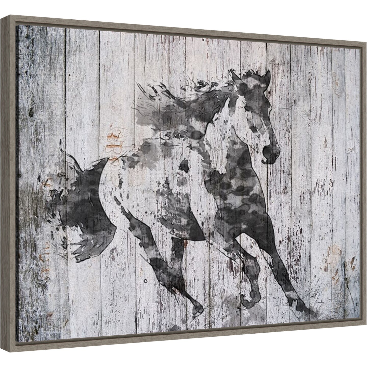 Running Black Horse by Irena Orlov 24-in. W x 18-in. H. Canvas Wall Art Print Framed in Grey