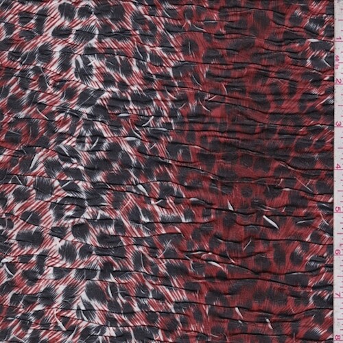 Rust Red/Black Cheetah Print Pucker Knit Fabric By the Yard
