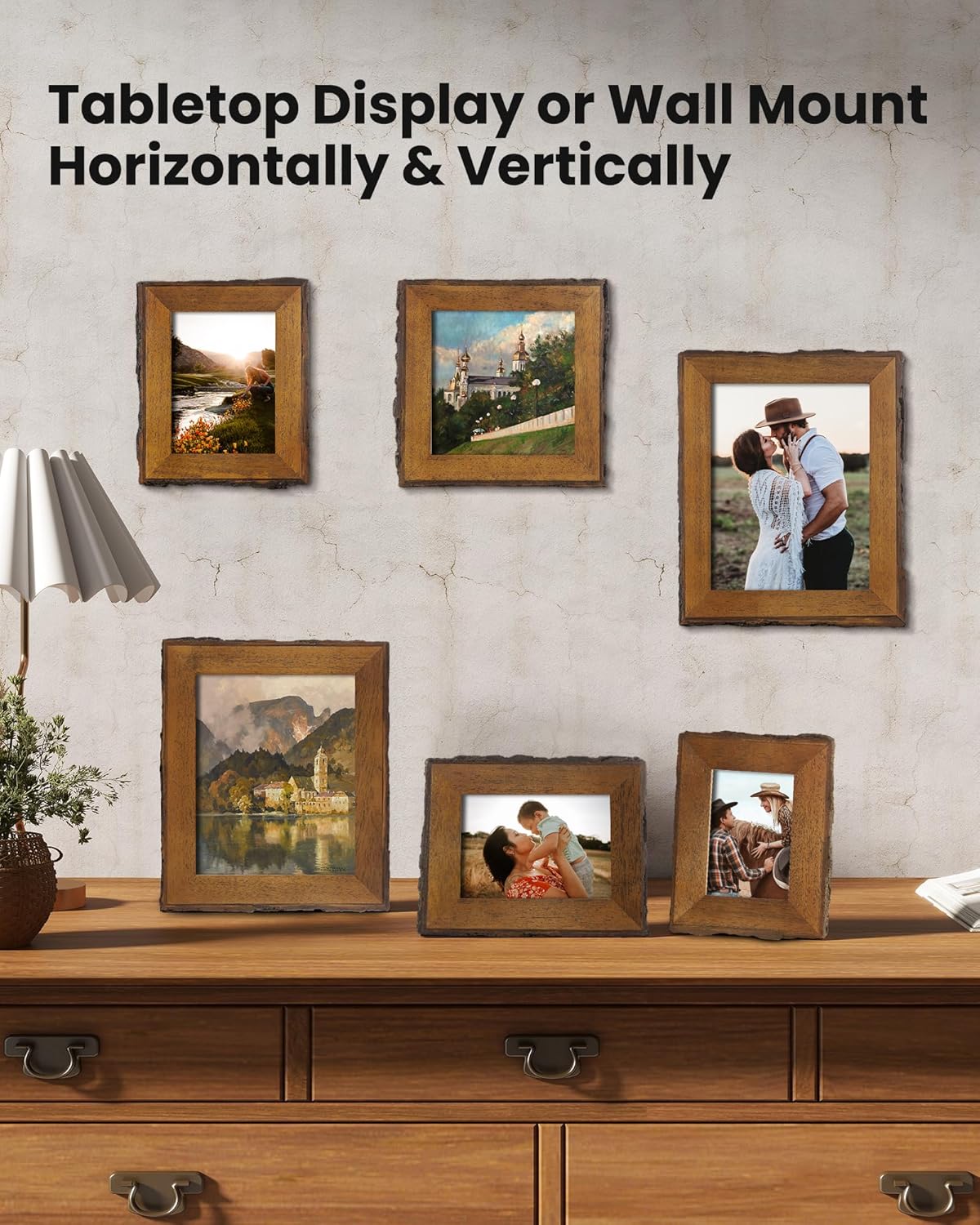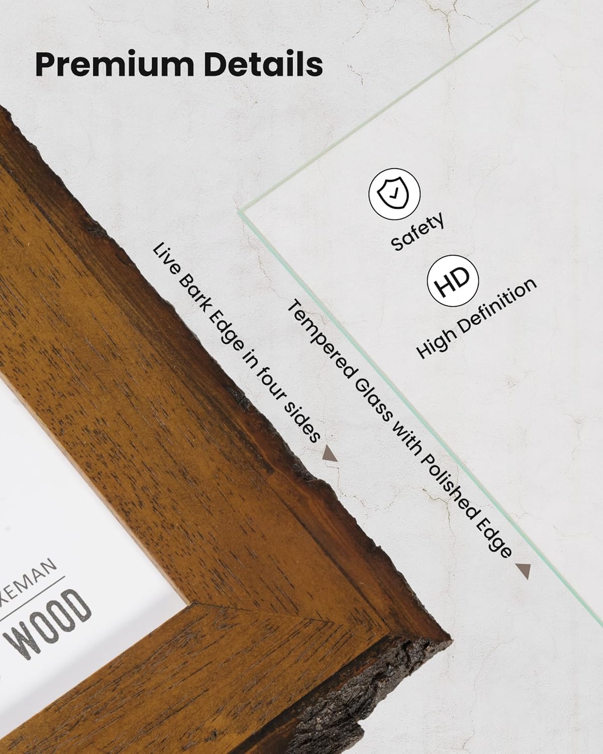 Rustic 5x7 Picture Frame|Natural Solid Wood 5 x 7 Photo Frame with Live Bark Edges|Tempered Glass