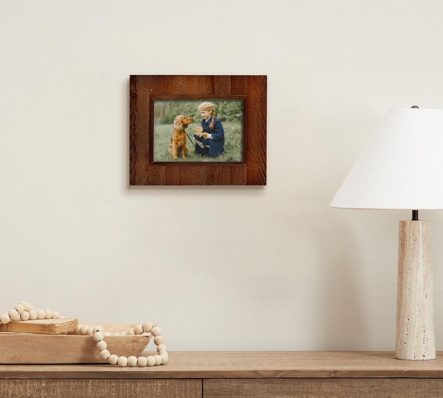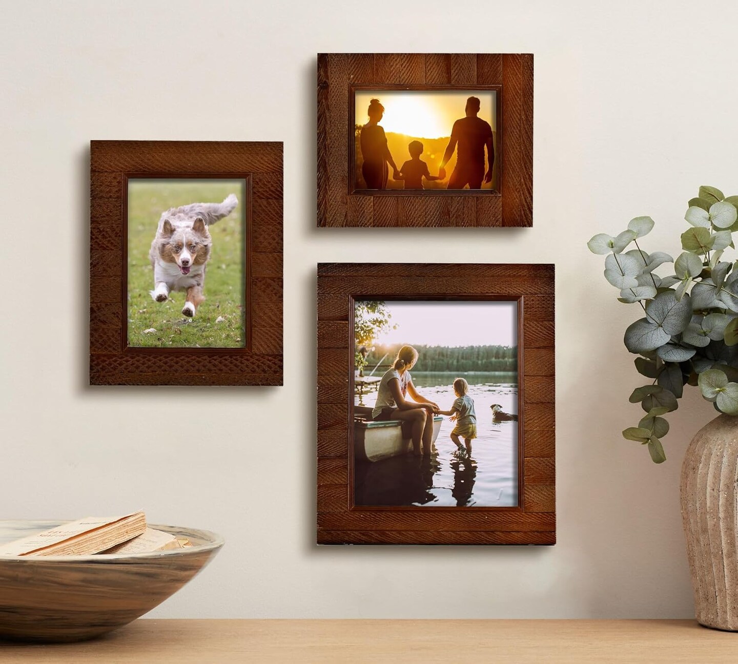 Rustic 5x7 Wood Picture Frame with Real Glass, Farmhouse Photo Frame for Tabletop & Wall Mount, Natural Wooden Frame for Family Photos, Gifts, Home Décor, Brown