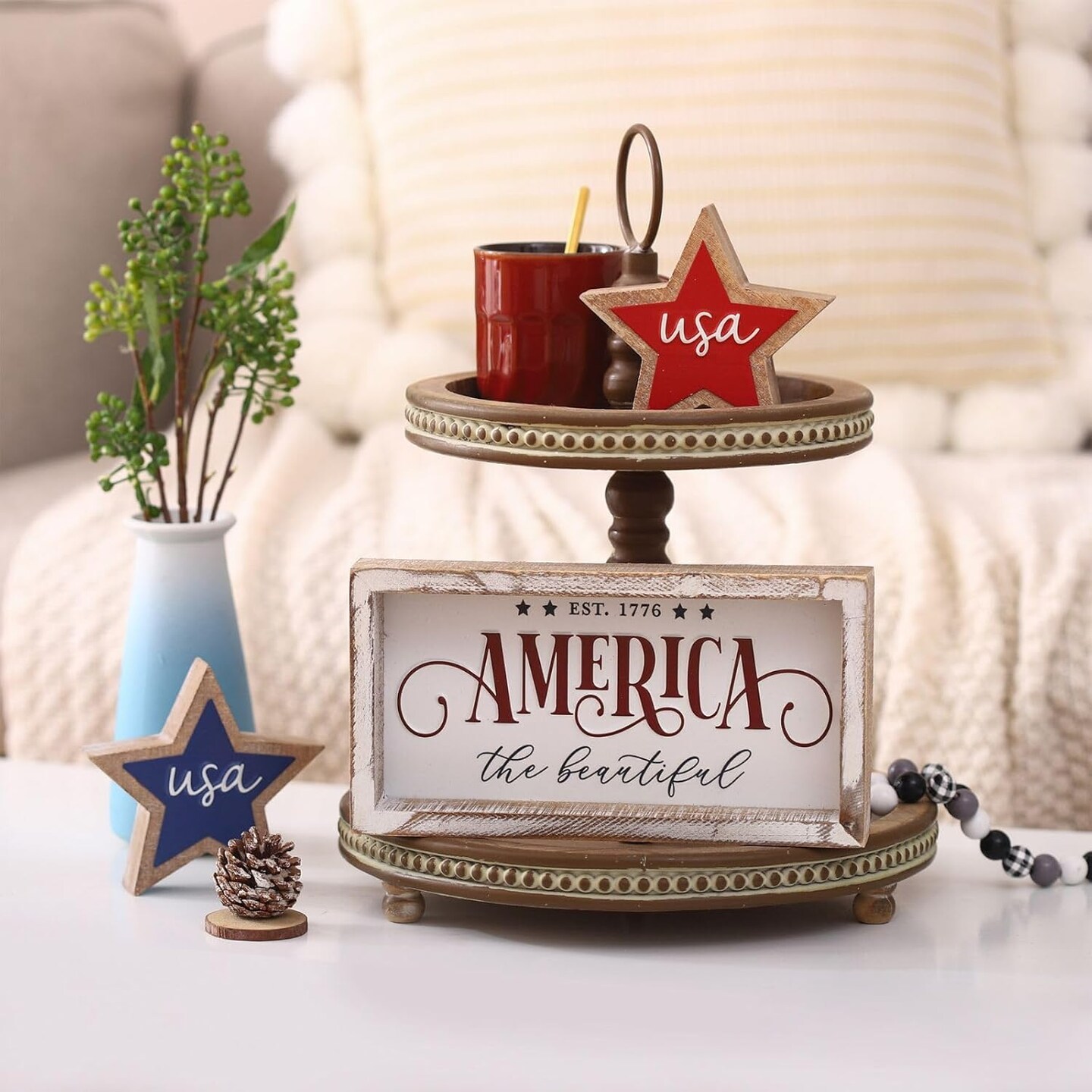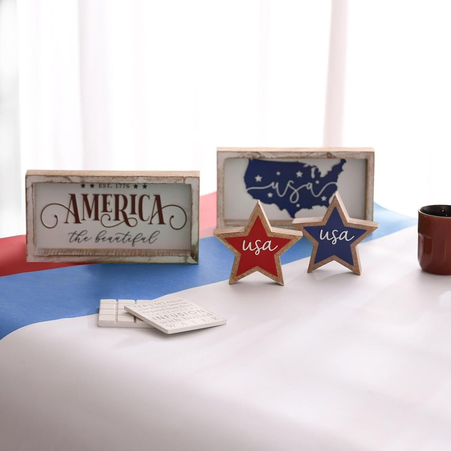 Rustic America the Beautiful Wooden Sign, Patriotic 4th of July Decorations for Home, Fourth of July Table Decorations for Table Shelf Mantel, July 4th Decor for Indoor