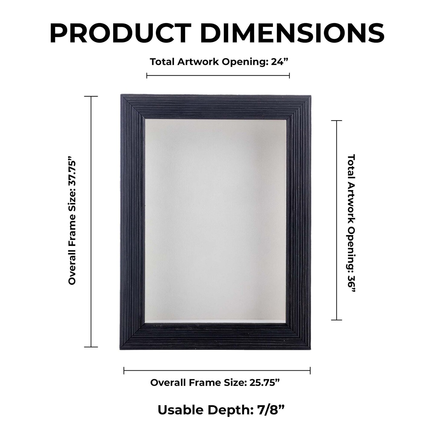 Rustic Black Wood Shadow Box Frame with Acrylic Front - White Suede Backing, 30 Sizes