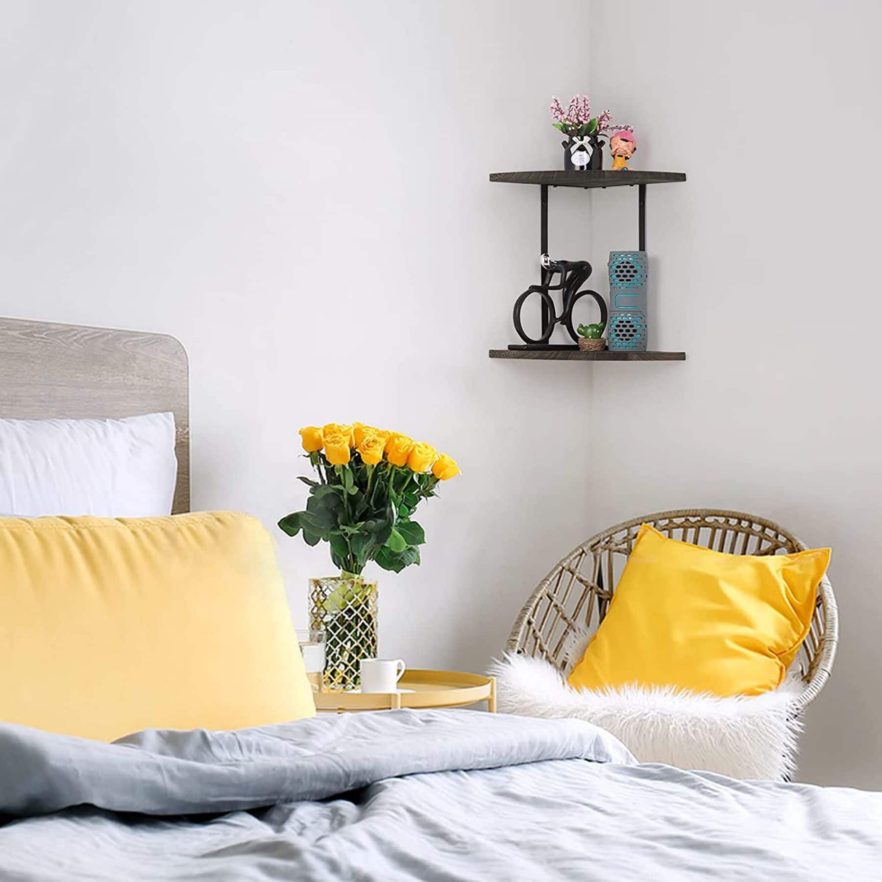 Rustic Brown 2-Tier Floating Corner Shelf