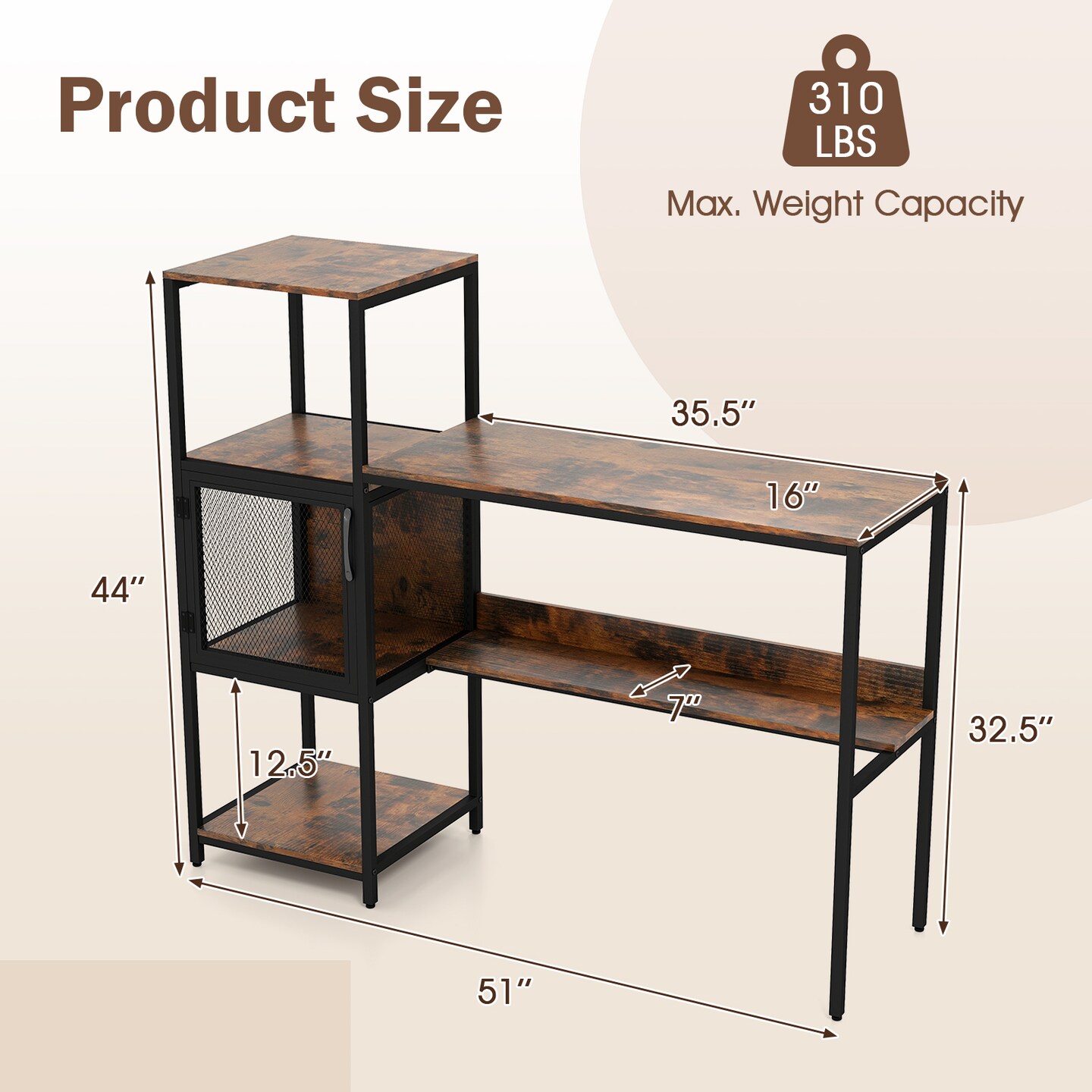 Rustic Brown Engineered Wood and Black Metal Computer Desk with Bookshelf