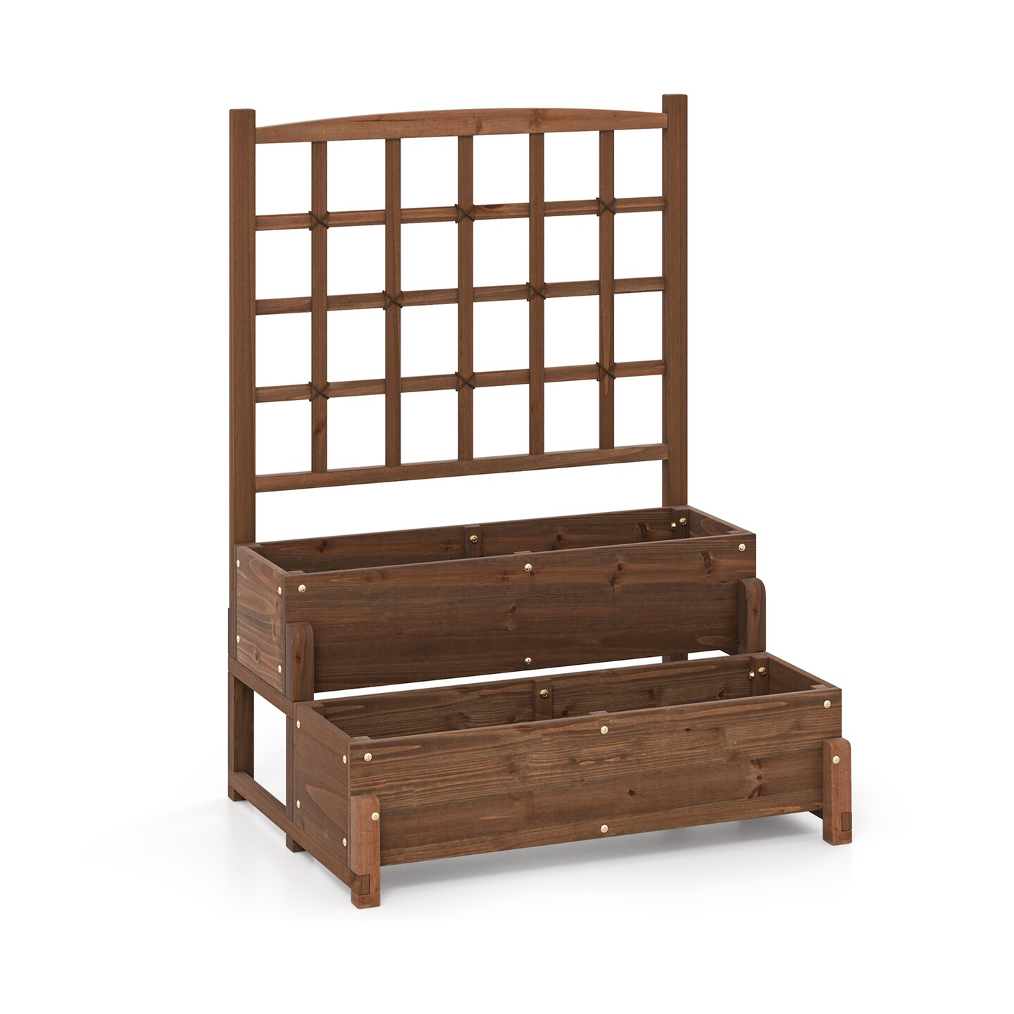 Rustic Brown Fir Wood Raised Garden Bed with Trellis 2-Tier Vertical Planter for Patio