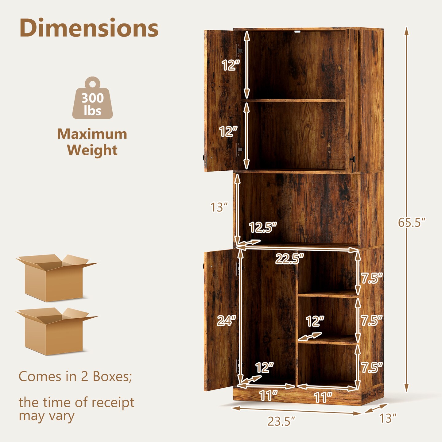 Rustic Brown Freestanding Kitchen Pantry with Microwave Countertop Cabinets and Open Shelves