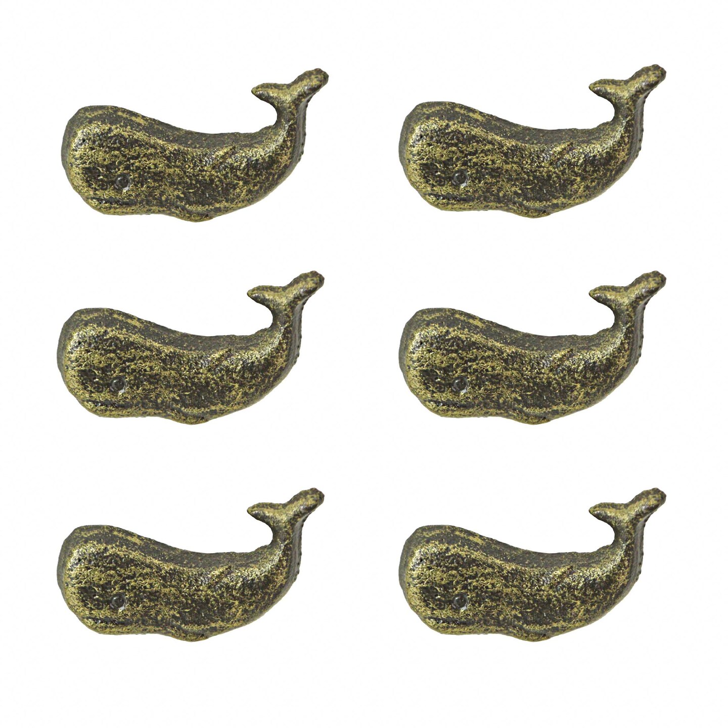 Rustic Cast Iron Whale Drawer Pull Decorative Cabinet Knob Nautical Set of 6