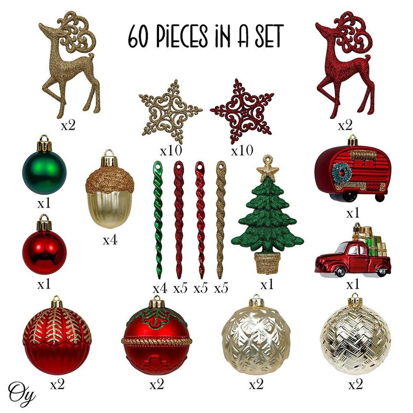Rustic Christmas Ornament Bauble, 60 Piece Set
