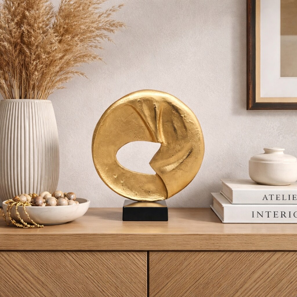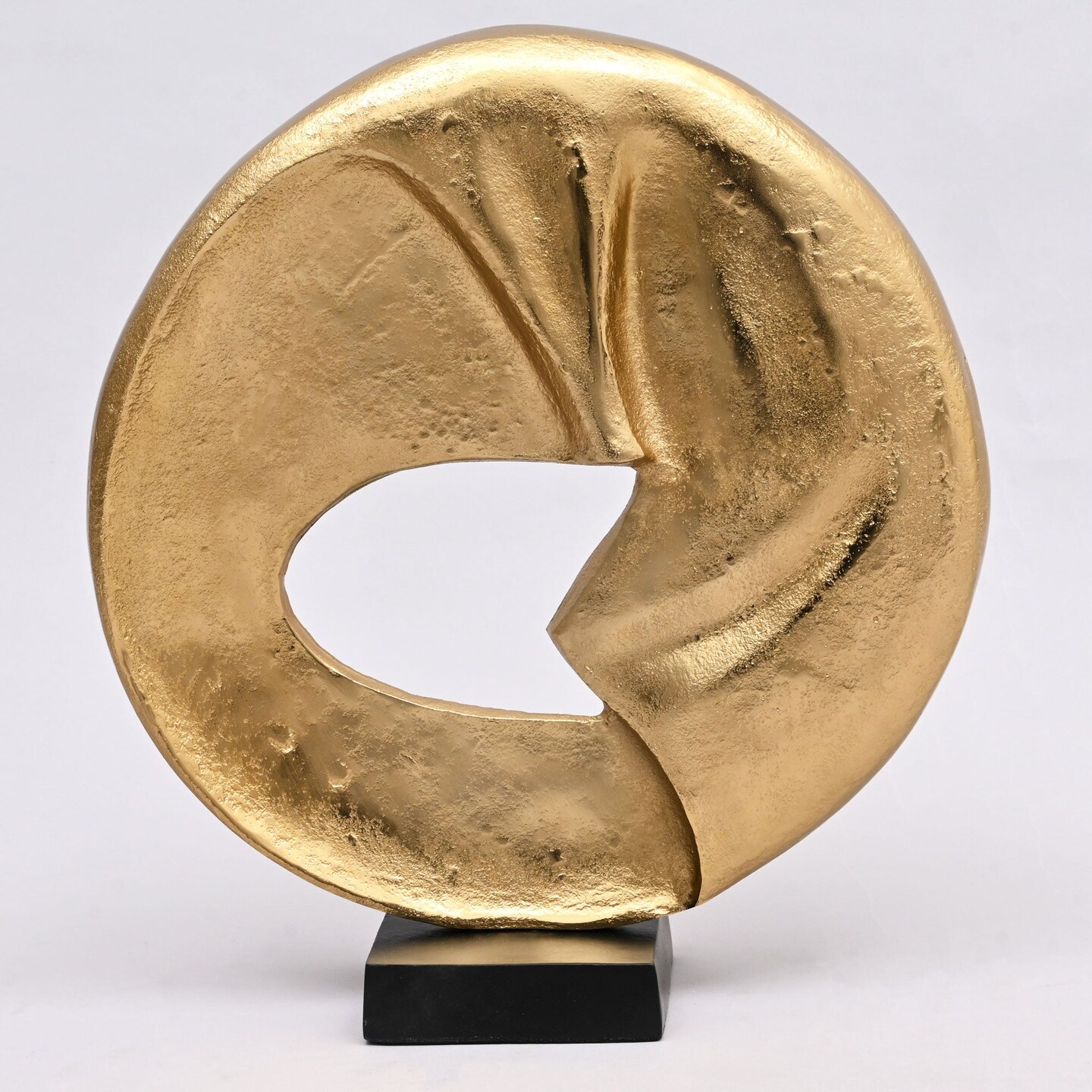 Rustic Circular Flow 15.25" Table Sculpture | Aluminum Décor Art Piece on Black Base