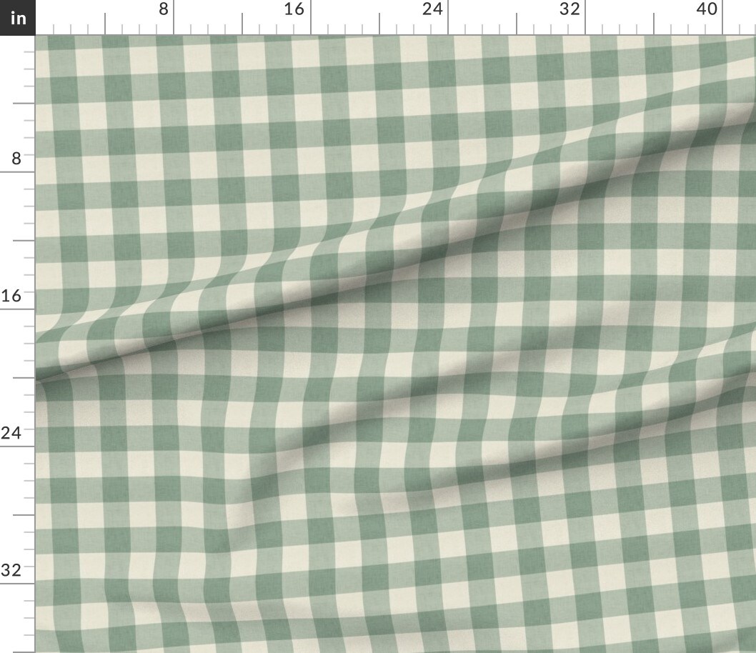 Rustic Country Farmhouse Primitive Gingham Check Plaid Picnic Cottagecore Classic Traditional Modern Farmhouse Soft Texture Spring Green Sage Custom Printed Fabric by Spoonflower Various Fabrics by the Yard or Fat Quarter