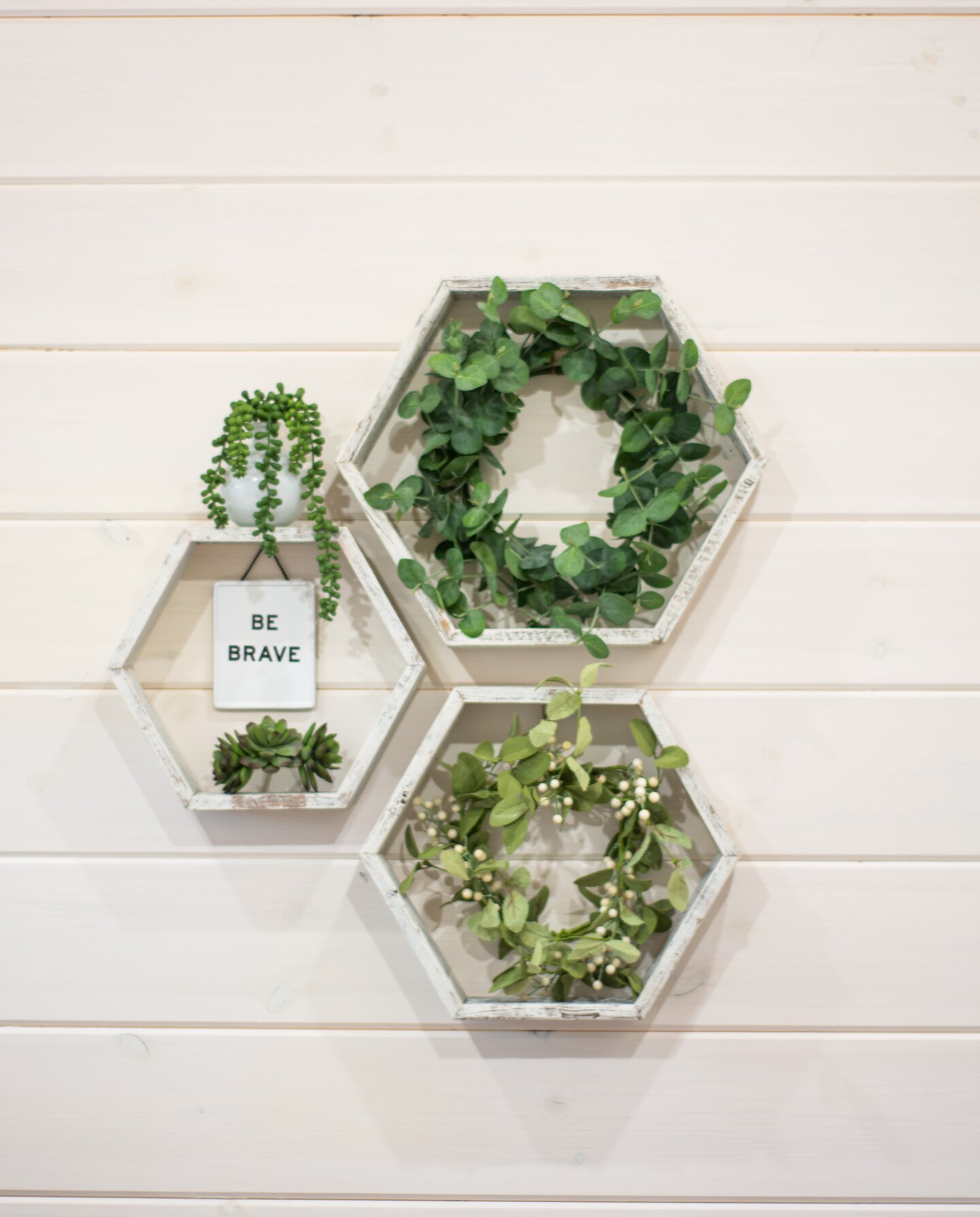 Rustic Farmhouse Floating Reclaimed Wood Hexagon Shelves (Set of 3)