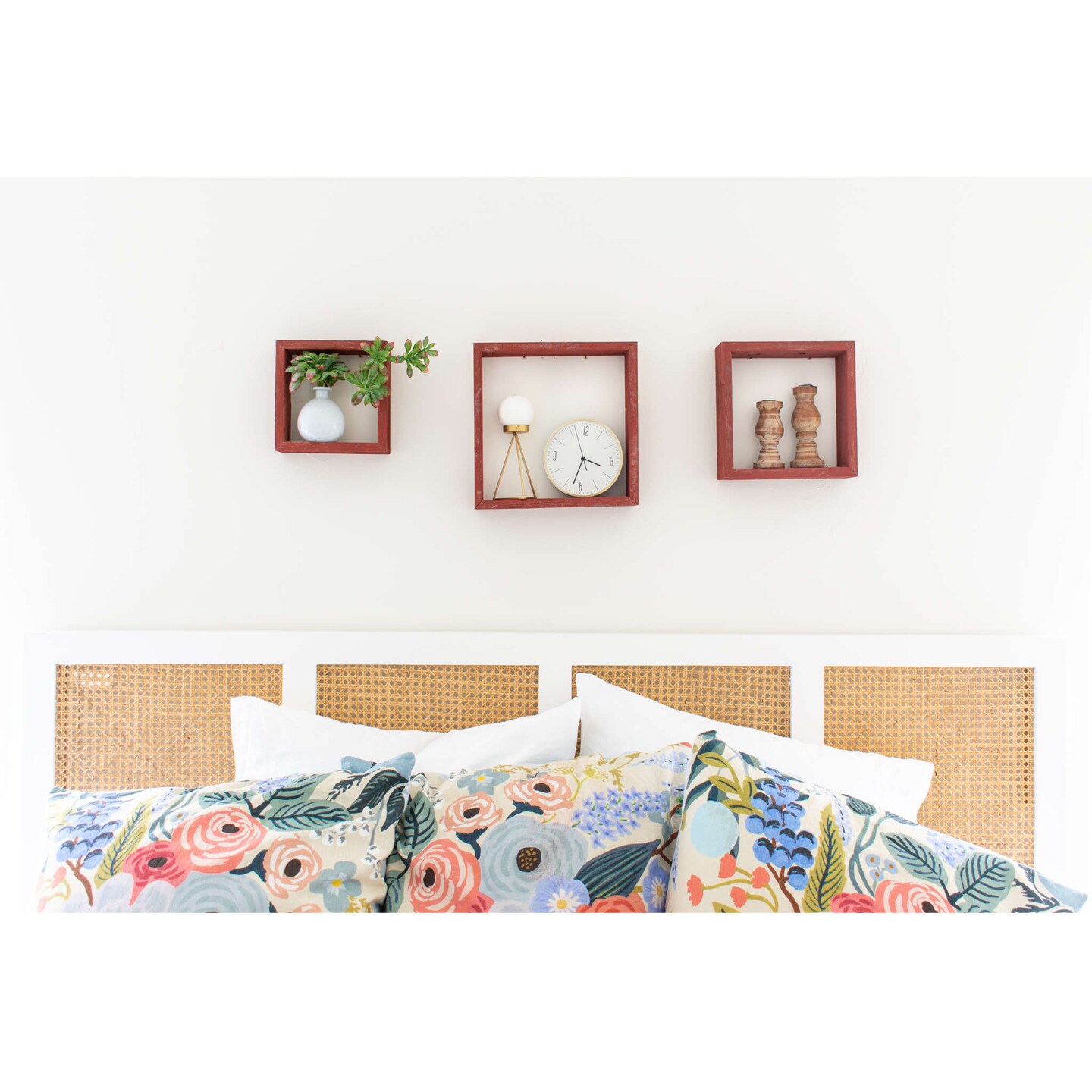 Rustic Farmhouse Reclaimed Wooden Open Square Wall Shelves (Set of 3)