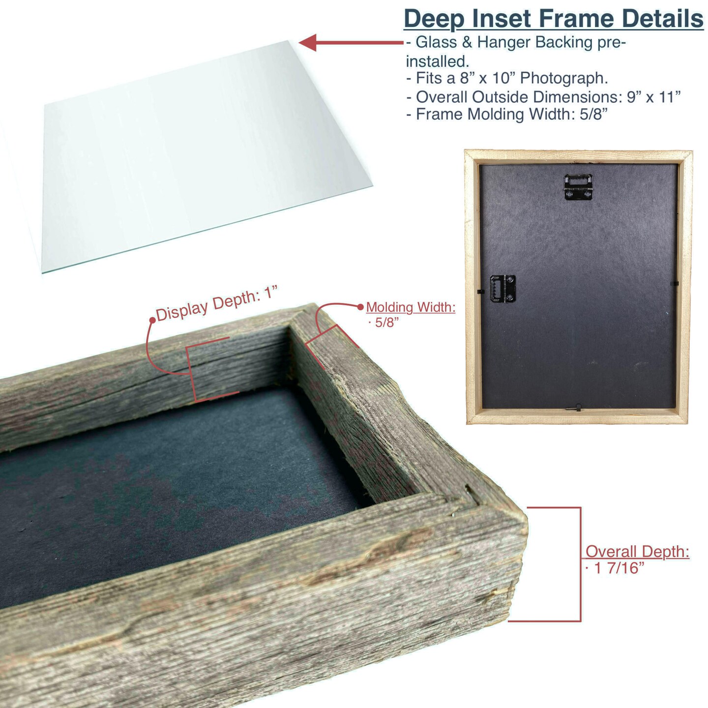 Rustic Farmhouse Signature Series Reclaimed Solid Wood Deep Inset Picture Frame
