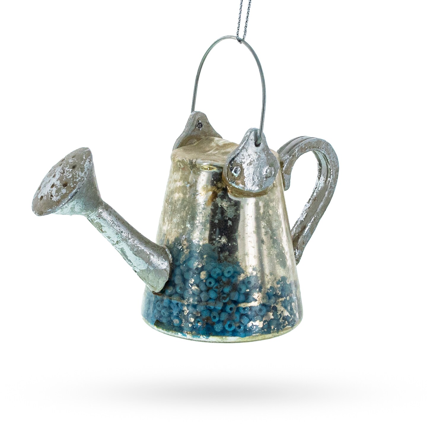 Rustic Metal Watering Can Glass Christmas Ornament