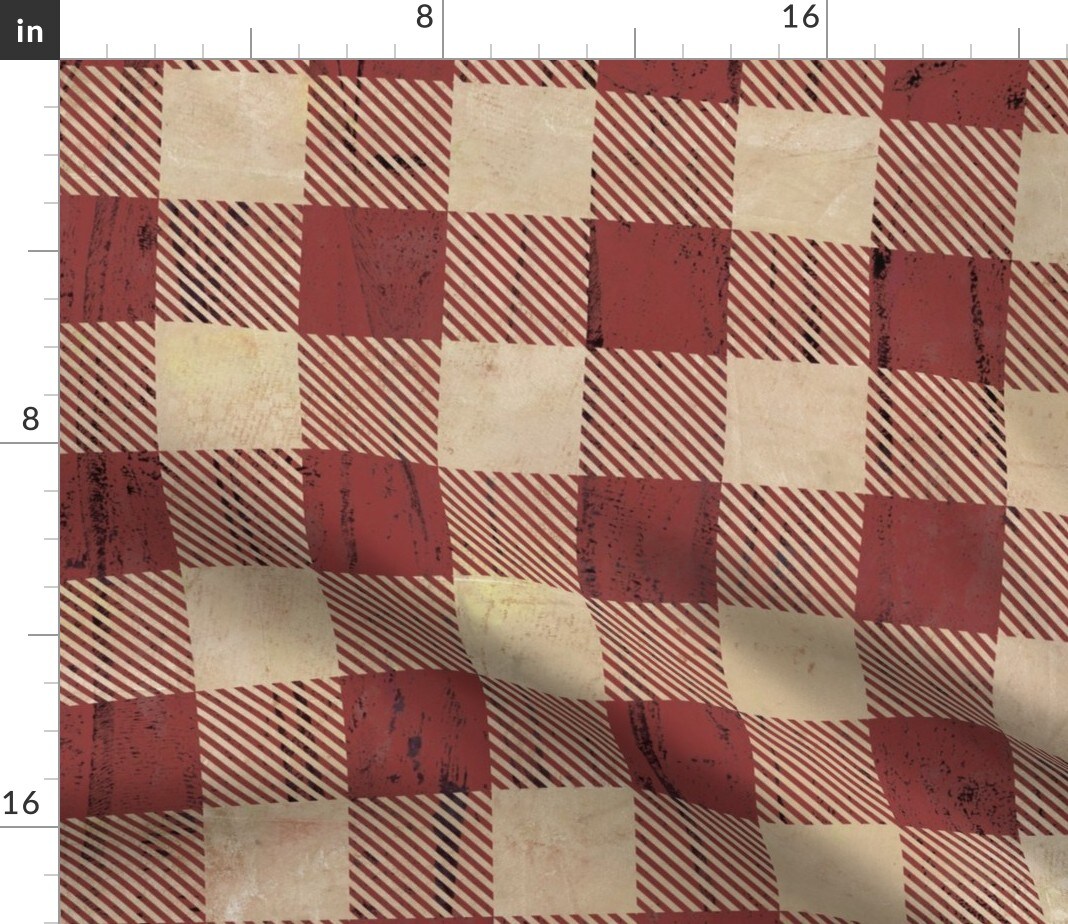 Rustic Plaid Earthy Brick Red Buffalo Plaid Weathered Look Distressed Red Plaid Custom Printed Fabric by Spoonflower Various Fabrics by the Yard or Fat Quarter