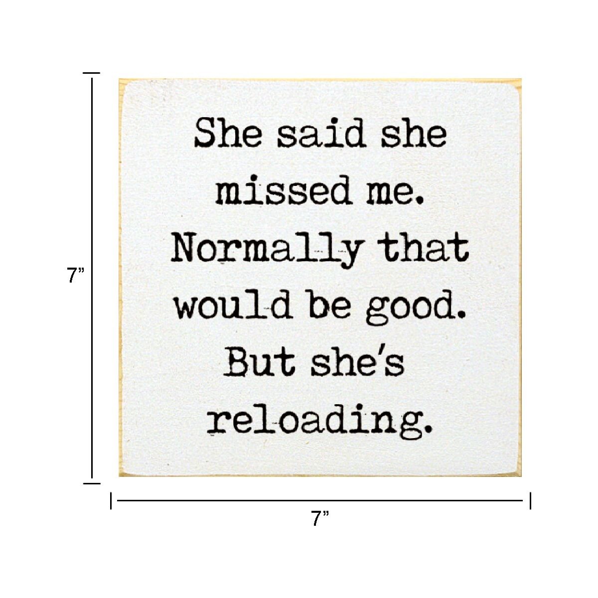 Rustic Solid Pine Wood Sign She Said She Missed Me But She's Reloading Wall or Shelf Decor