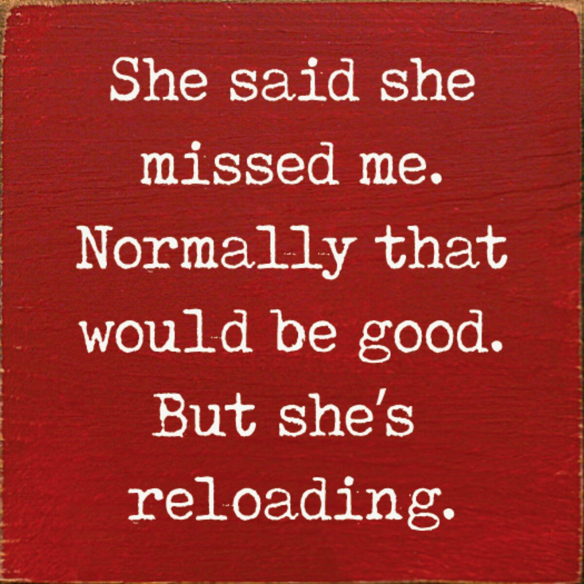 Rustic Solid Pine Wood Sign She Said She Missed Me But She's Reloading Wall or Shelf Decor