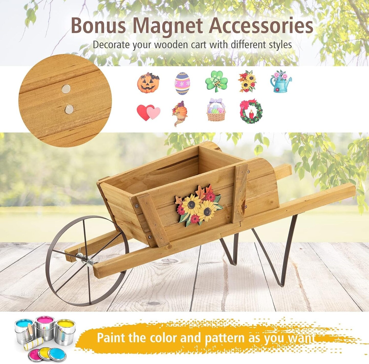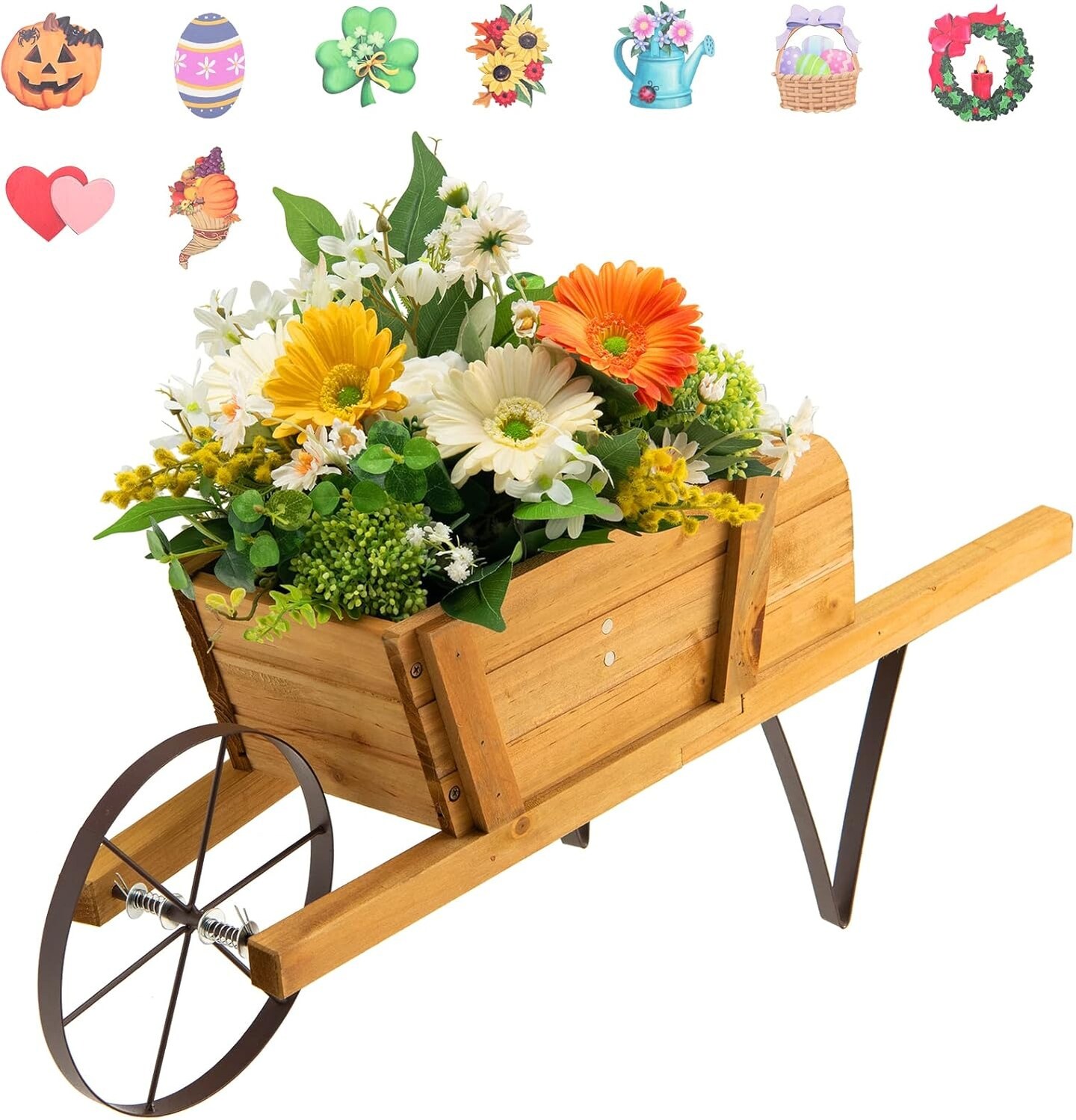 Rustic Wheelbarrow Wagon Planter with Metal Support