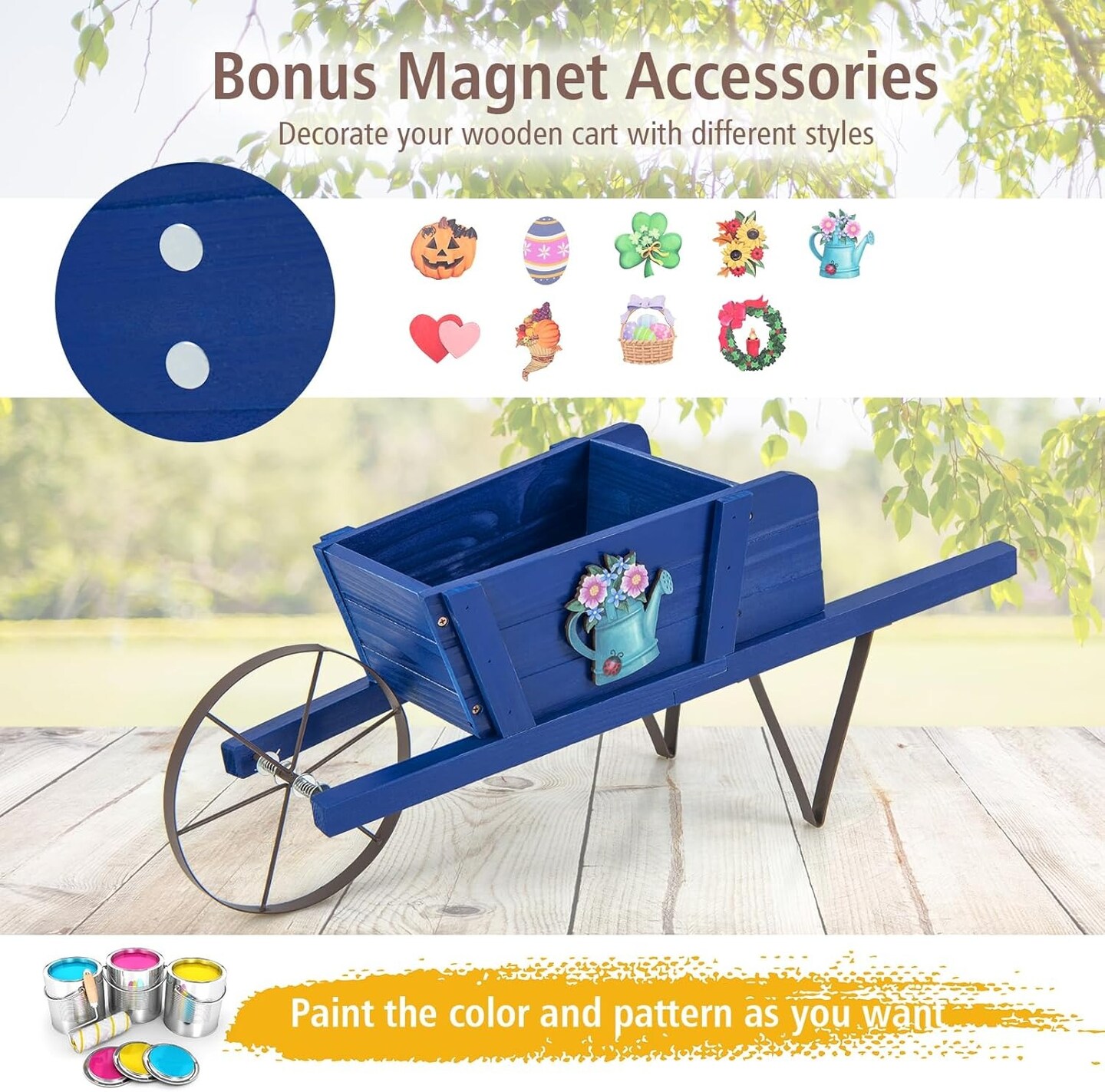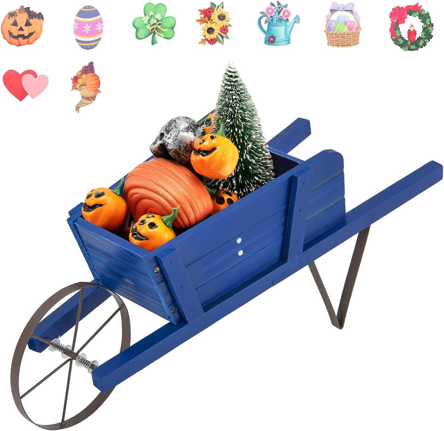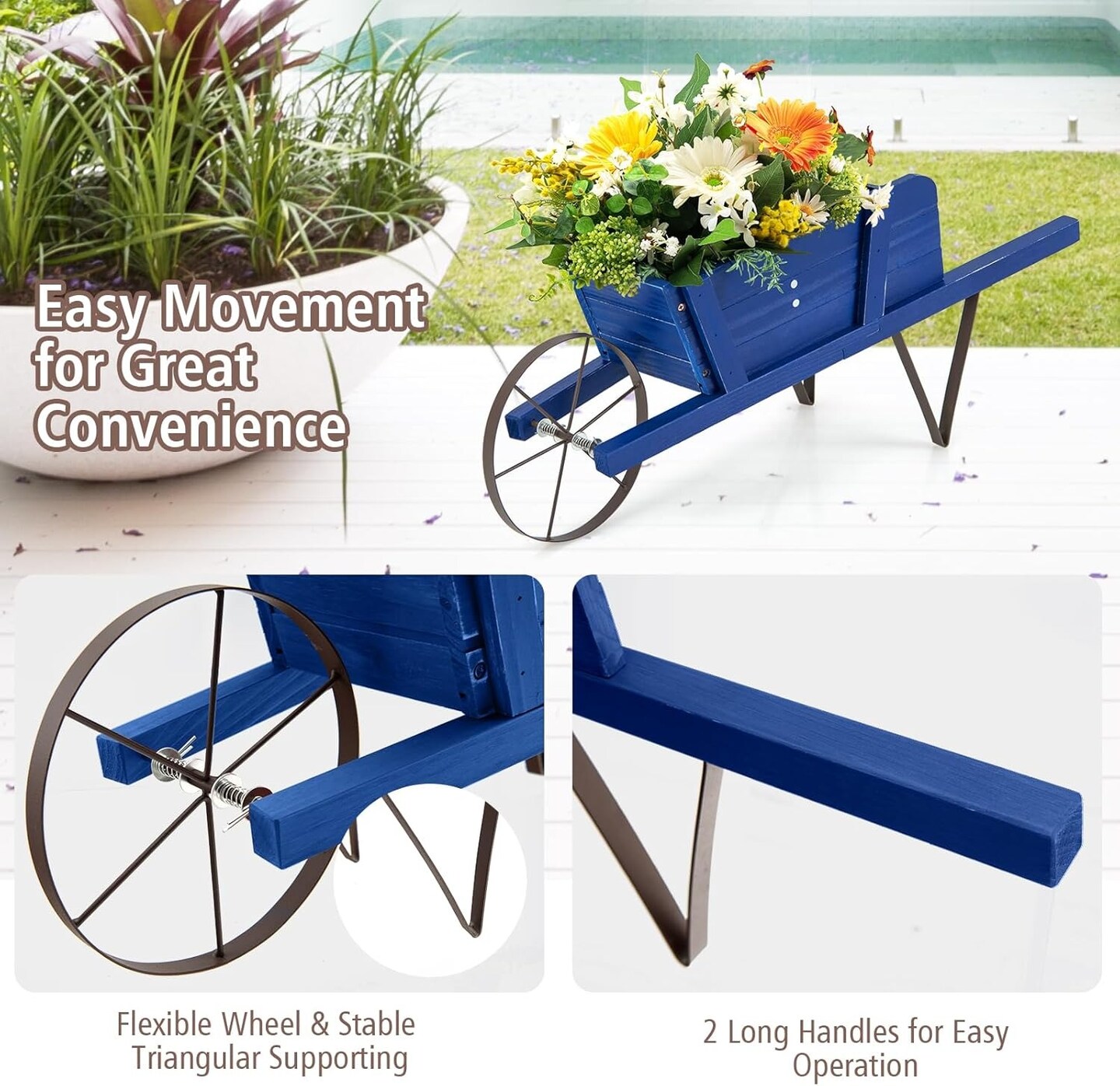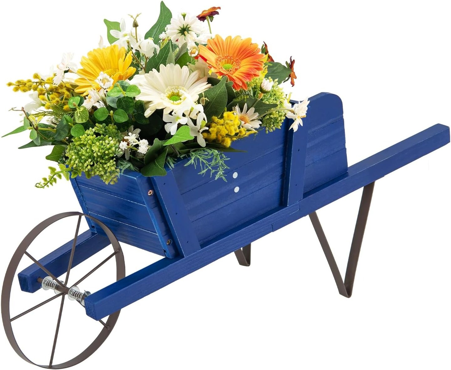 Rustic Wheelbarrow Wagon Planter with Metal Support