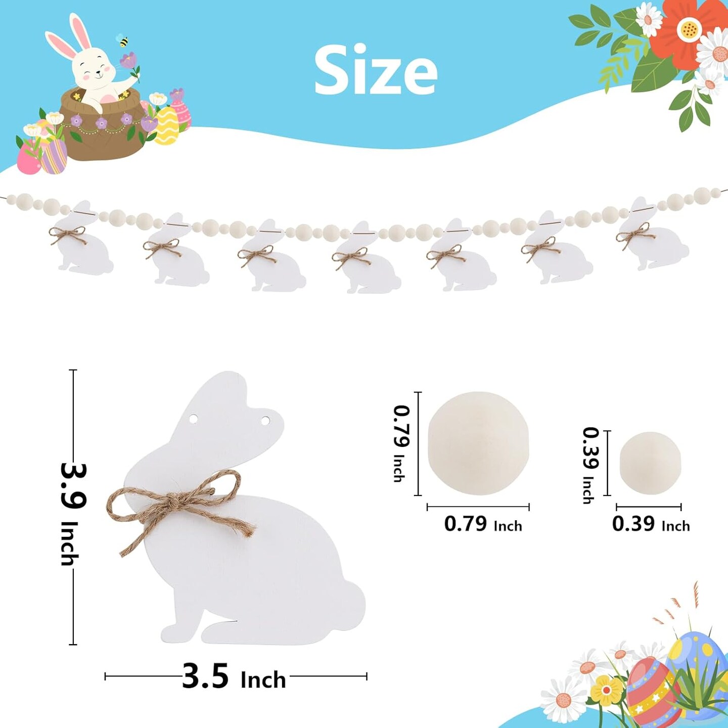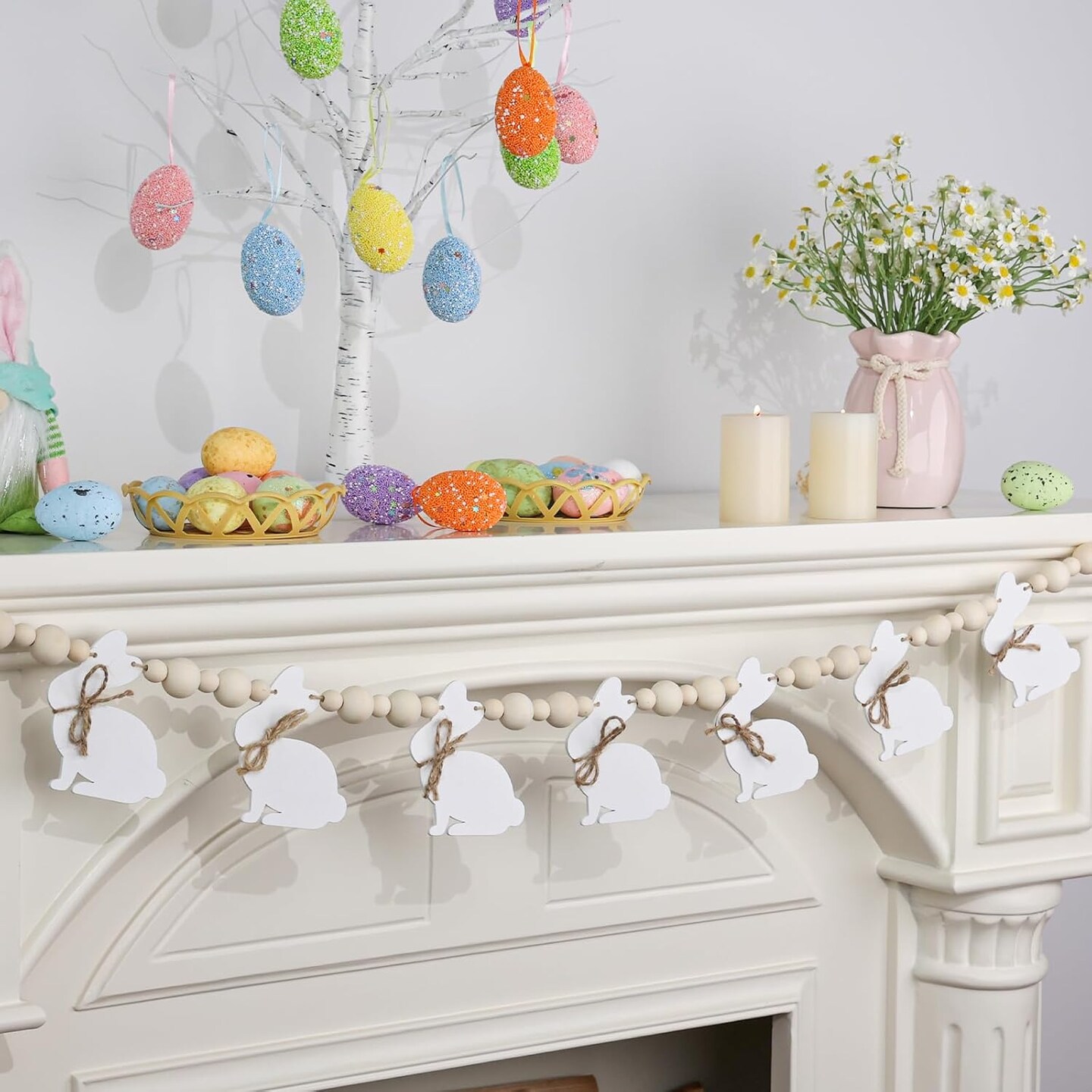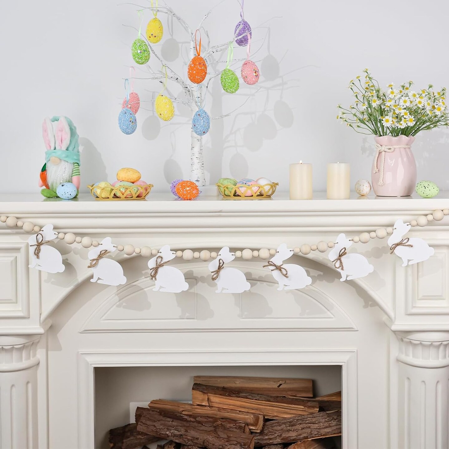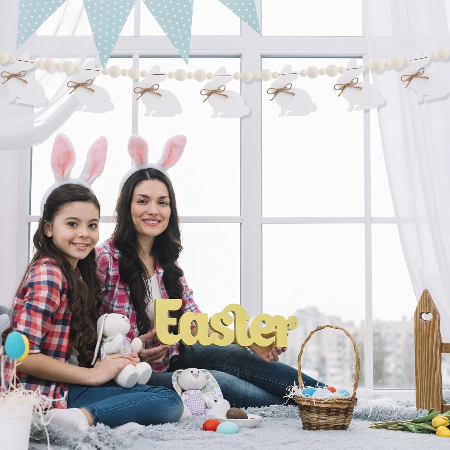 Rustic Wooden Bunny Garland – Farmhouse Easter Banner for Mantle, Fireplace, Wall, or Party Decor