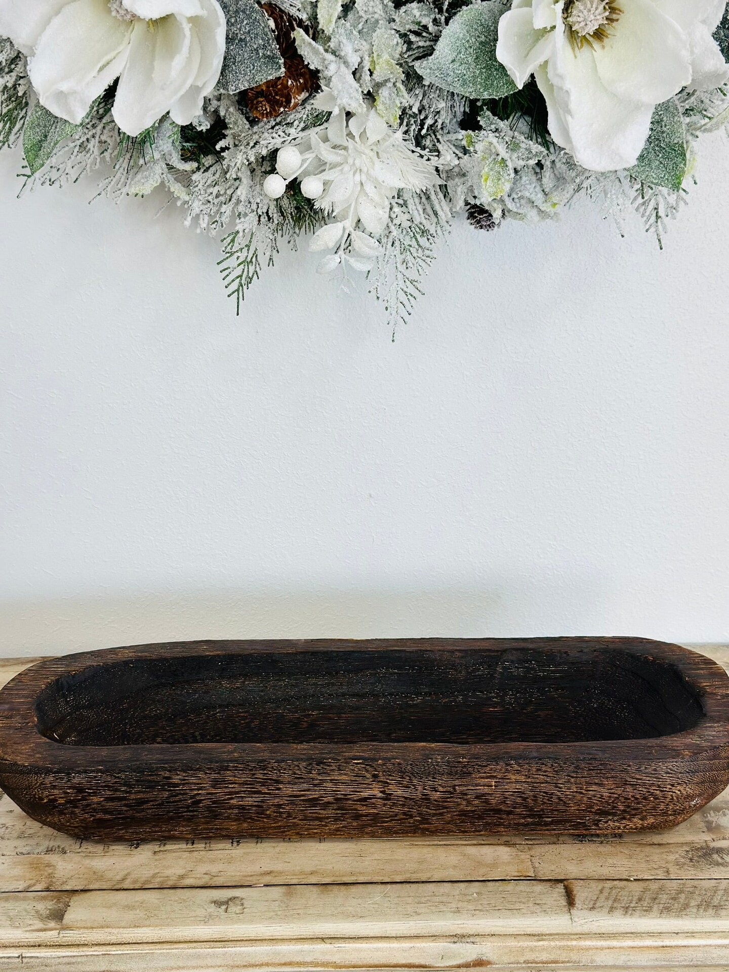Rustic Wooden Dough Bowl Tray - Antique Brown Oval for Centerpieces, Candle Making, and Table Décor