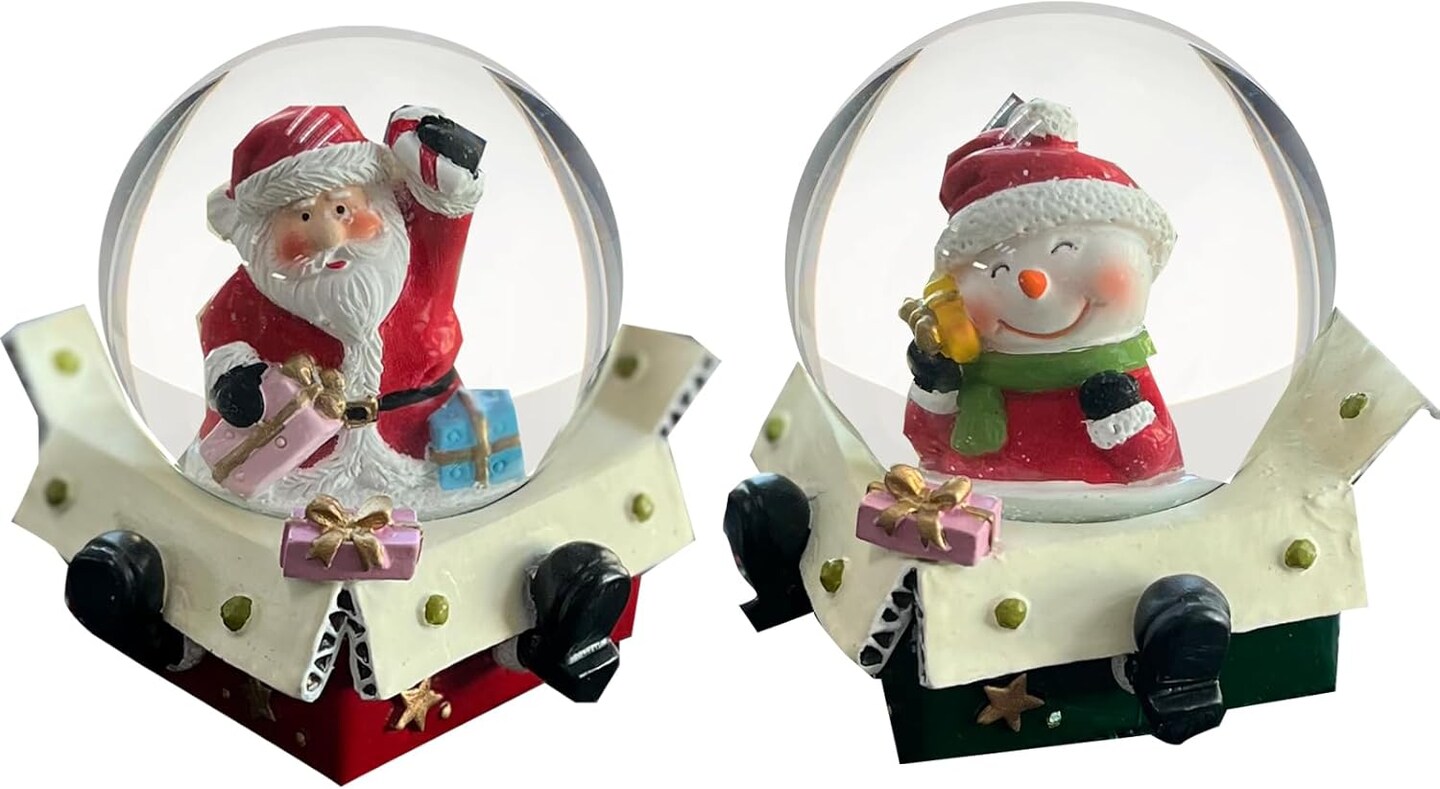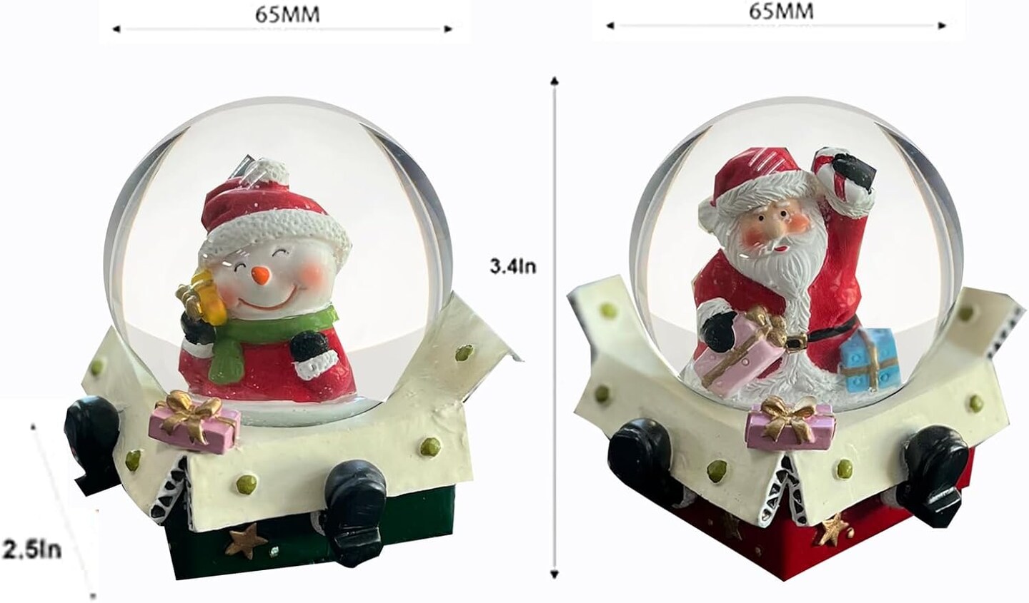 S/2 Christmas Snow Globe, Santa Claus Snowman Snowglobes Figurines, Snow Globes,Santa Snow Globe,Christmas Snow Globes