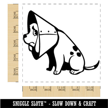 Sad Pet Dog in Cone of Shame Square Rubber Stamp for Stamping Crafting