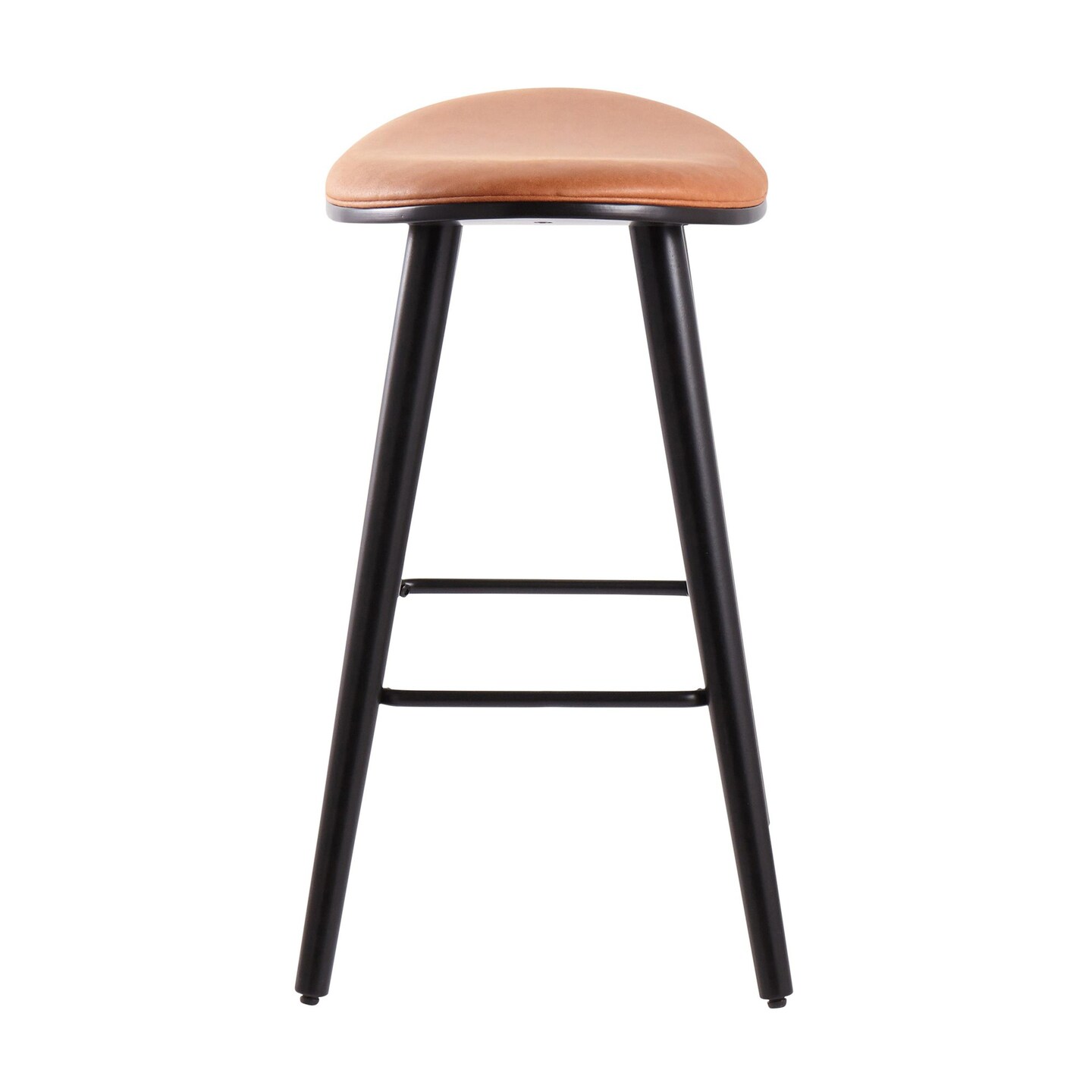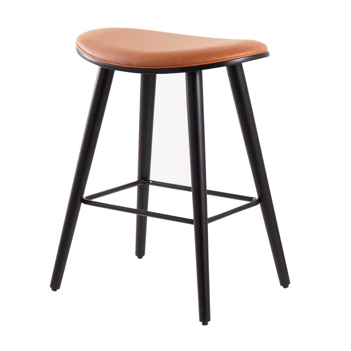 Saddle 26" Contemporary Counter Stool in Wood and Faux Leather with Metal - Set of 2