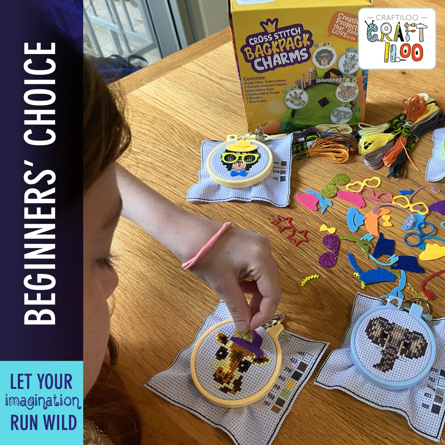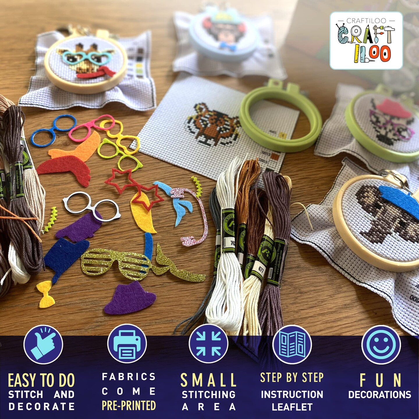 Safari Animals Cross Stitch Kits for Beginners. 5 Stamped Cross Stitch Kits for Kids.Needlepoint Kits for Beginners. Embroidery Kit for Kids. Crossstitch Kit for Beginners. Girls Cross Stitch kit