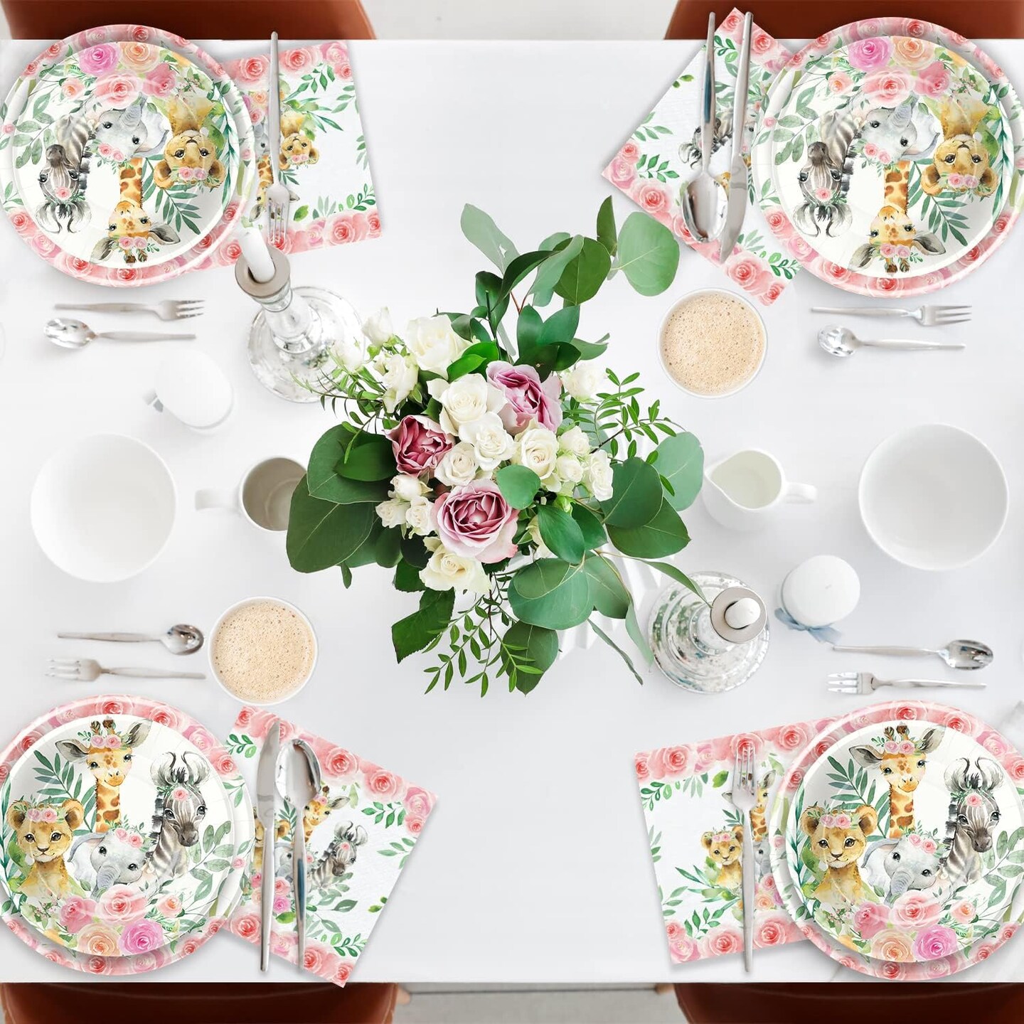 Safari Baby Shower Decorations Tableware Girl (Pink)