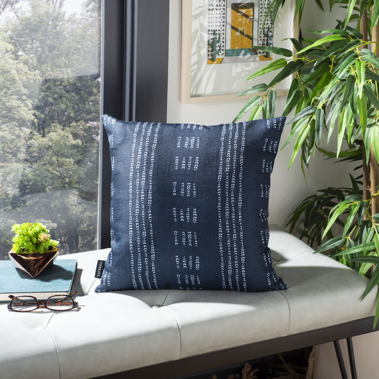 Safavieh Madelyn Pillow White / Blue Home Decor Pillow Throw Comfort Cushion