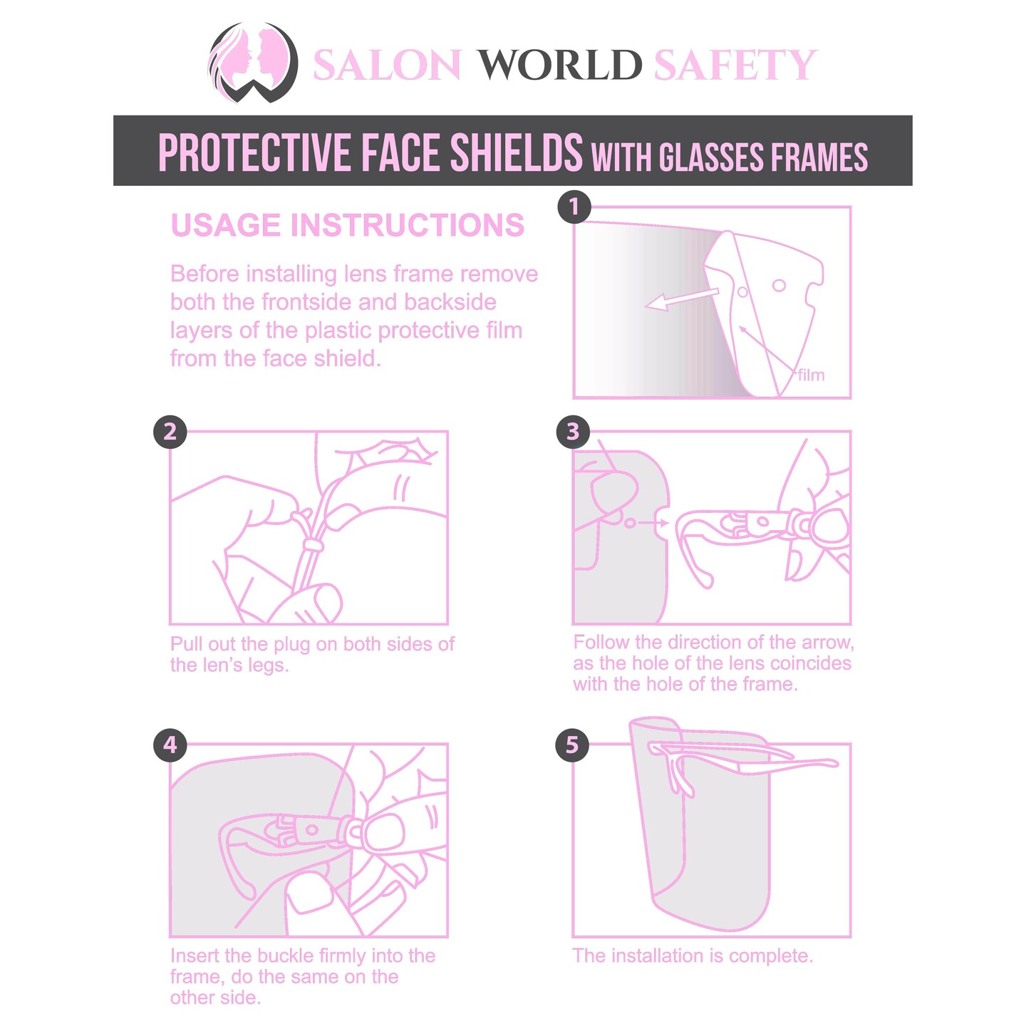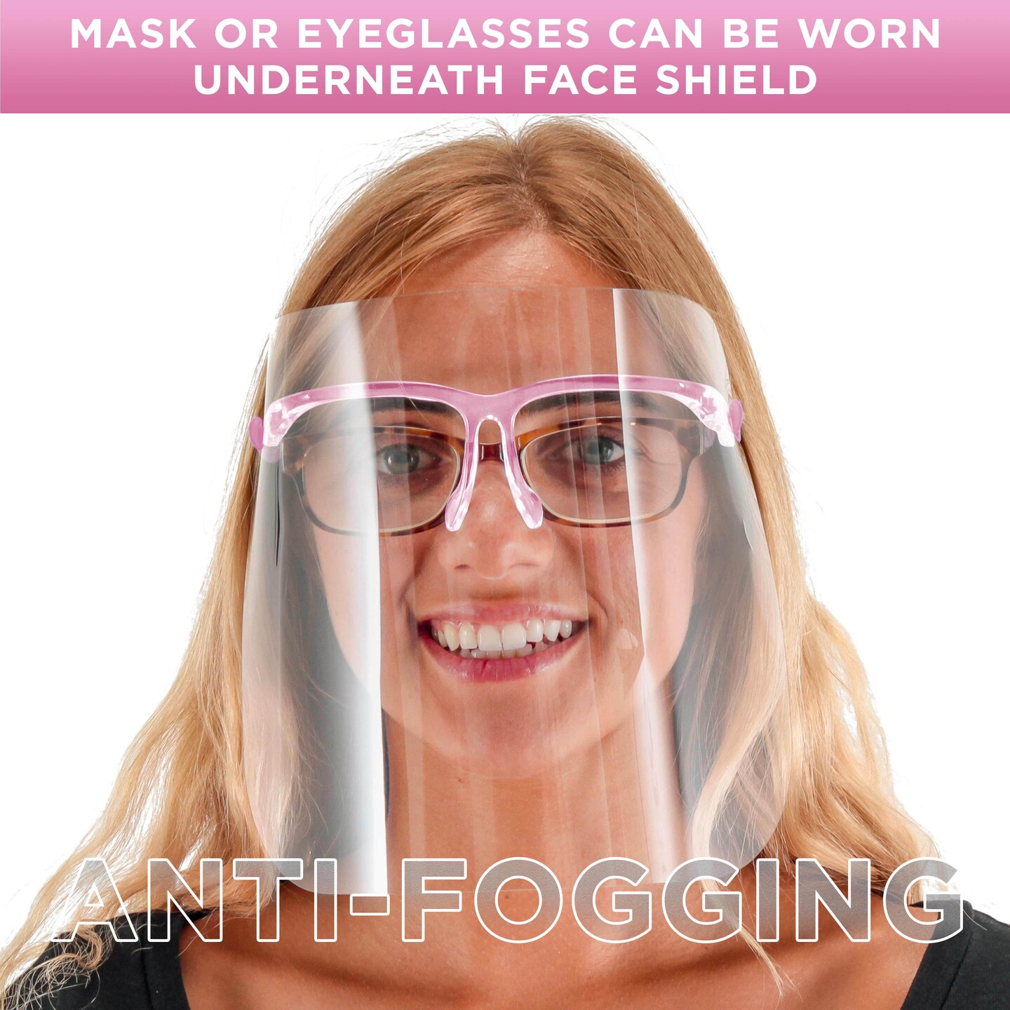Safety Face Shields with Pink Glasses Frames (Pack of 4) - Ultra Clear Protective Full Face Shields to Protect Eyes Nose Mouth - Anti-Fog PET Plastic