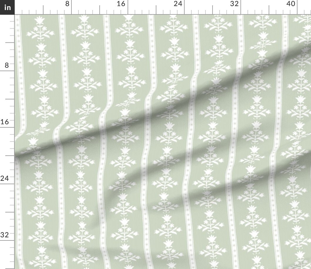 Sage Floral Stripe Traditional Simple Grandmillenial Cottagecore Custom Printed Fabric by Spoonflower Various Fabrics by the Yard or Fat Quarter