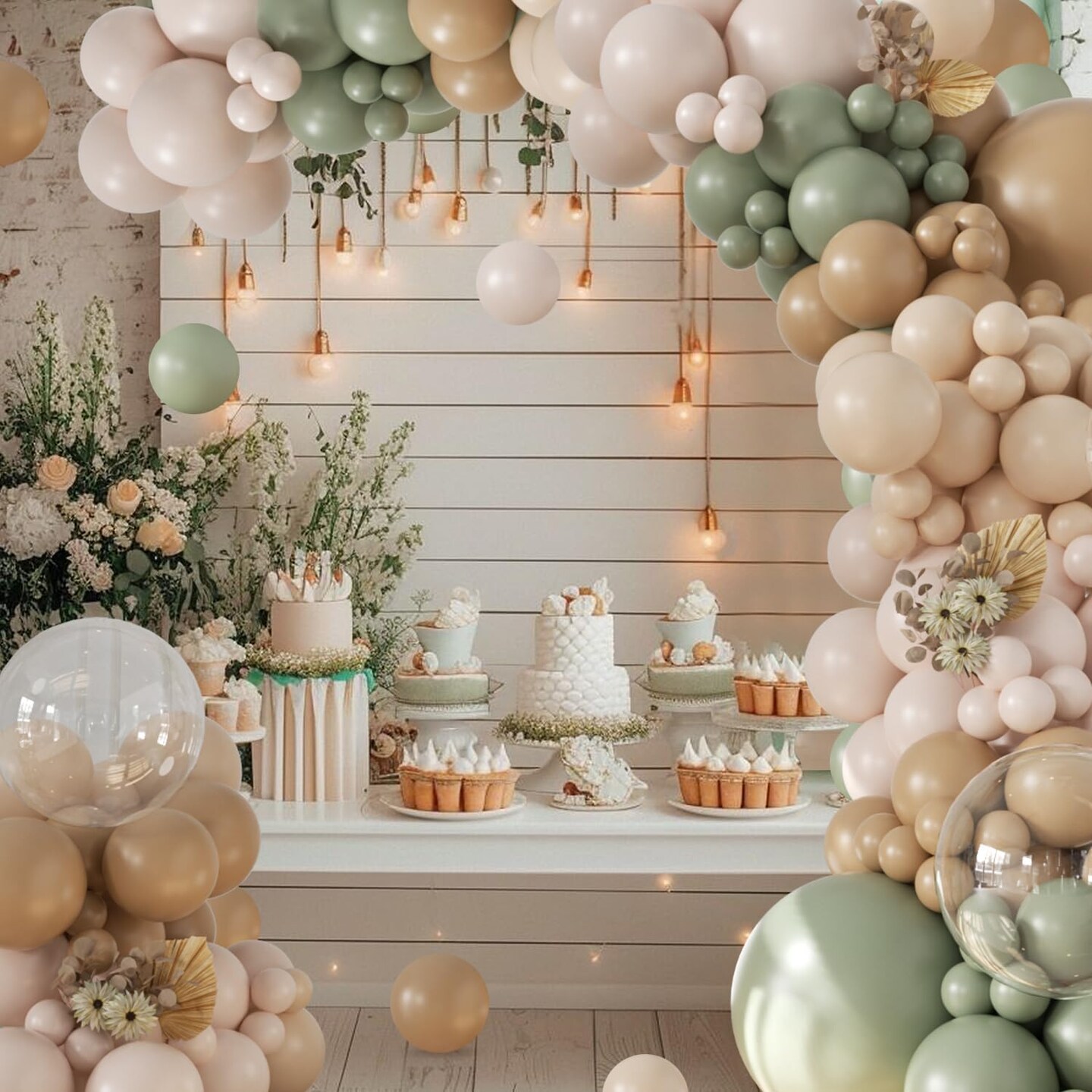 Sage Green Balloon Arch Kit 126Pcs Neutral Balloon Garland Arch Kit Include Dusty Green Sand White Tan Nude Clear Balloons for Wedding Baby Shower Gender Reveal Birthday Party Decorations