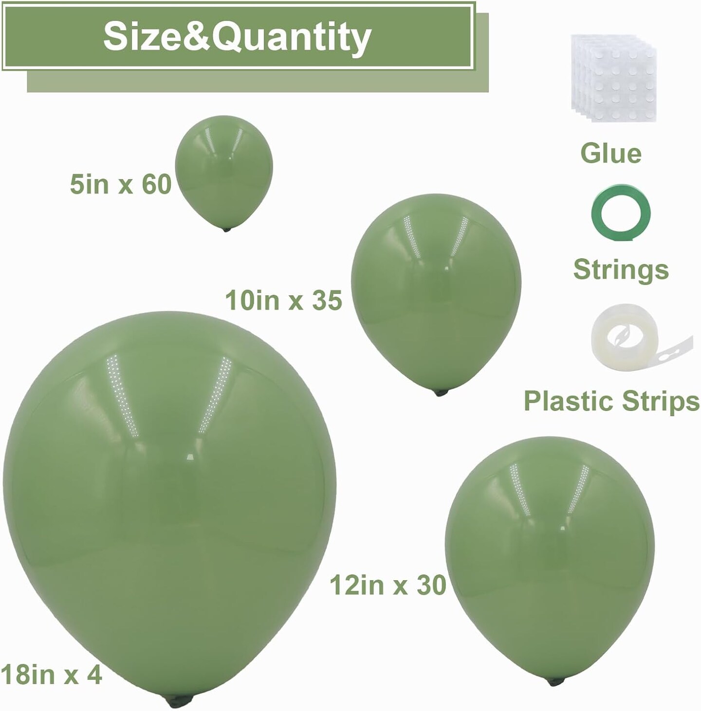 Sage Green Balloons Arch Kit -129pcs Different Sizes 18,12,10,5inches
