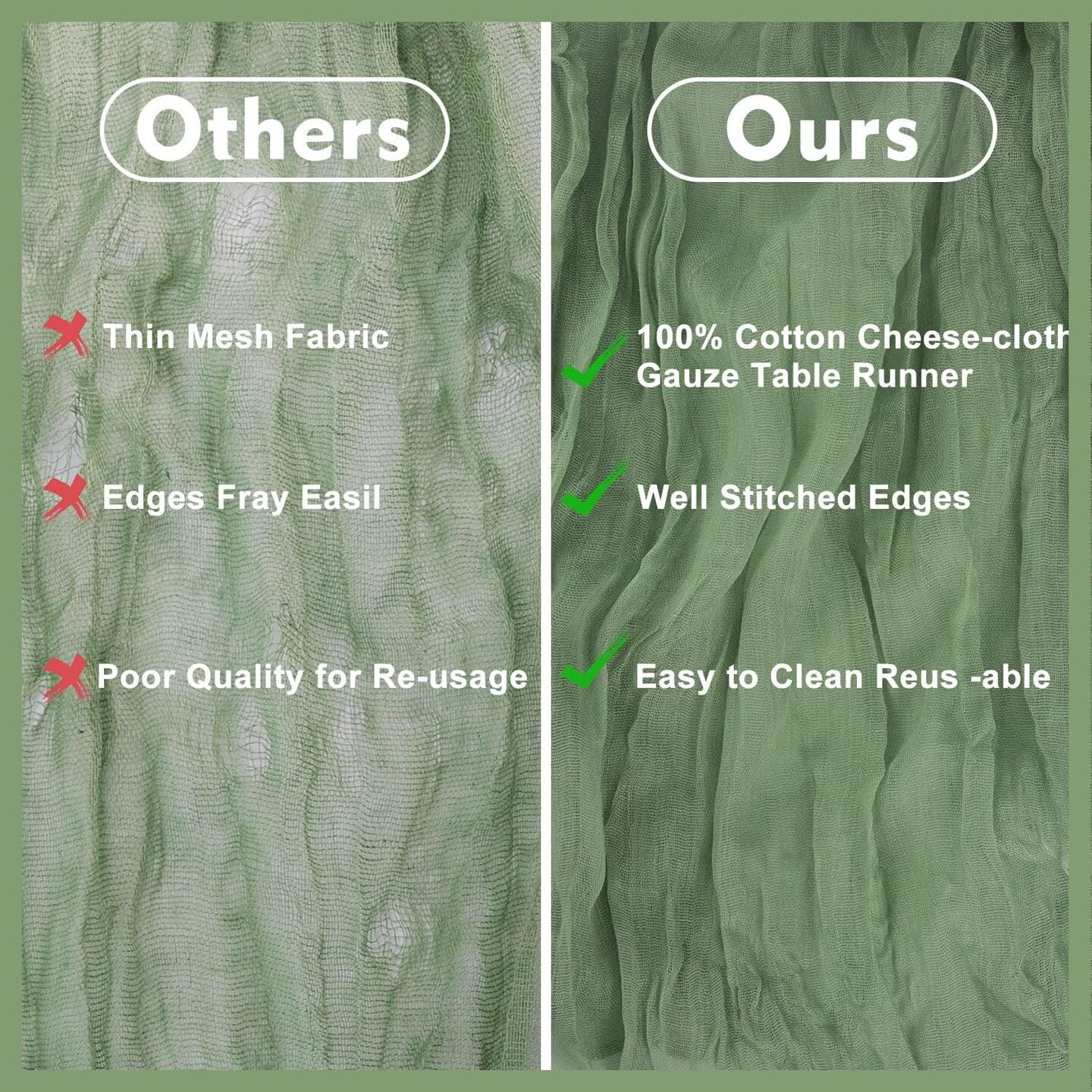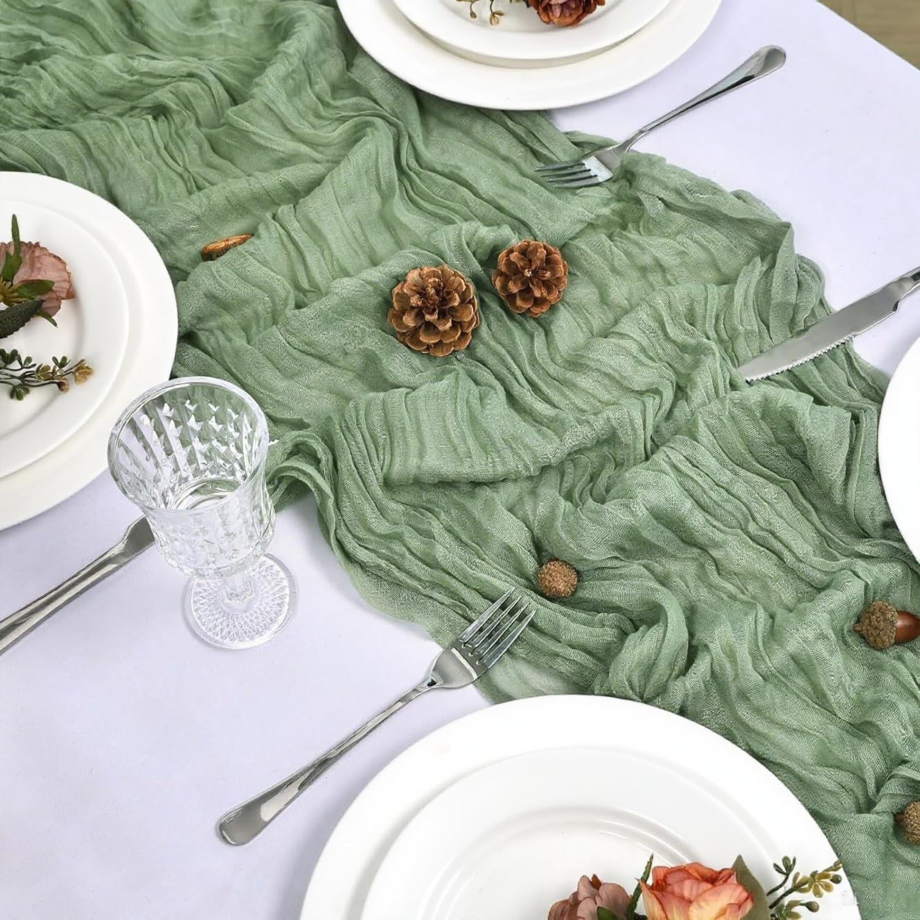 Sage Green Cheesecloth Table Runner 10ft Boho Gauze Fabric Cheese(Sage Green)35"W