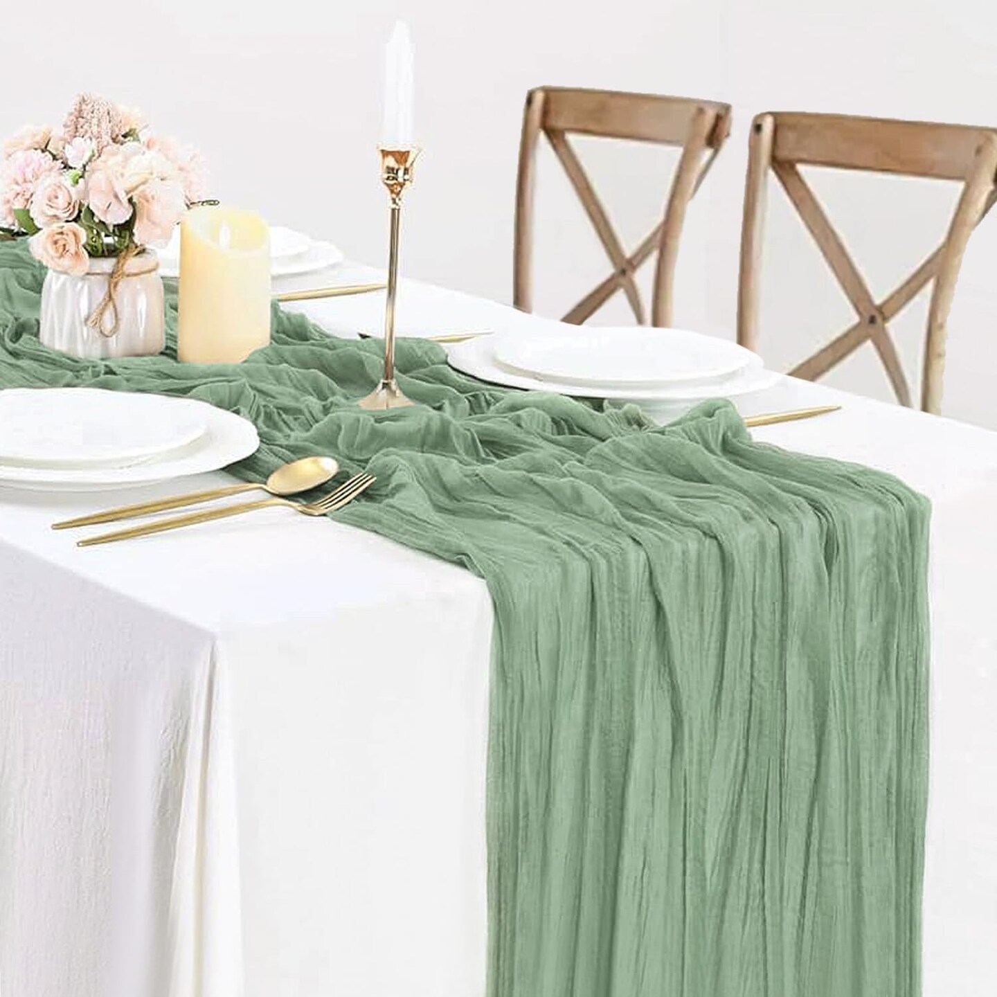 Sage Green Cheesecloth Table Runner, 10ft Gauze Table Runner Boho Green Table Cloth(Sage Green)120"L x 35"W
