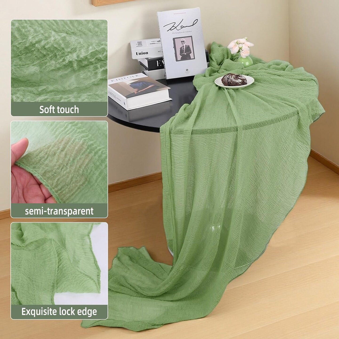 Sage Green Cheesecloth Table Runner 120 Inch 10FT Boho Cheese Cloth Table Runners(Sage Green)120"L x 35"W