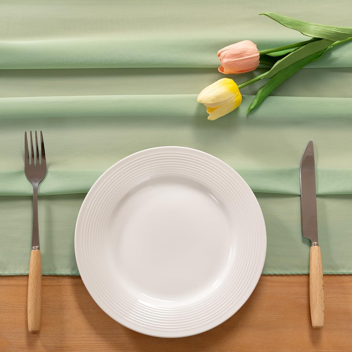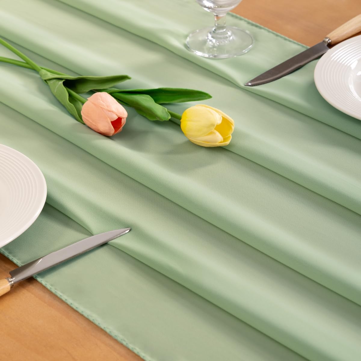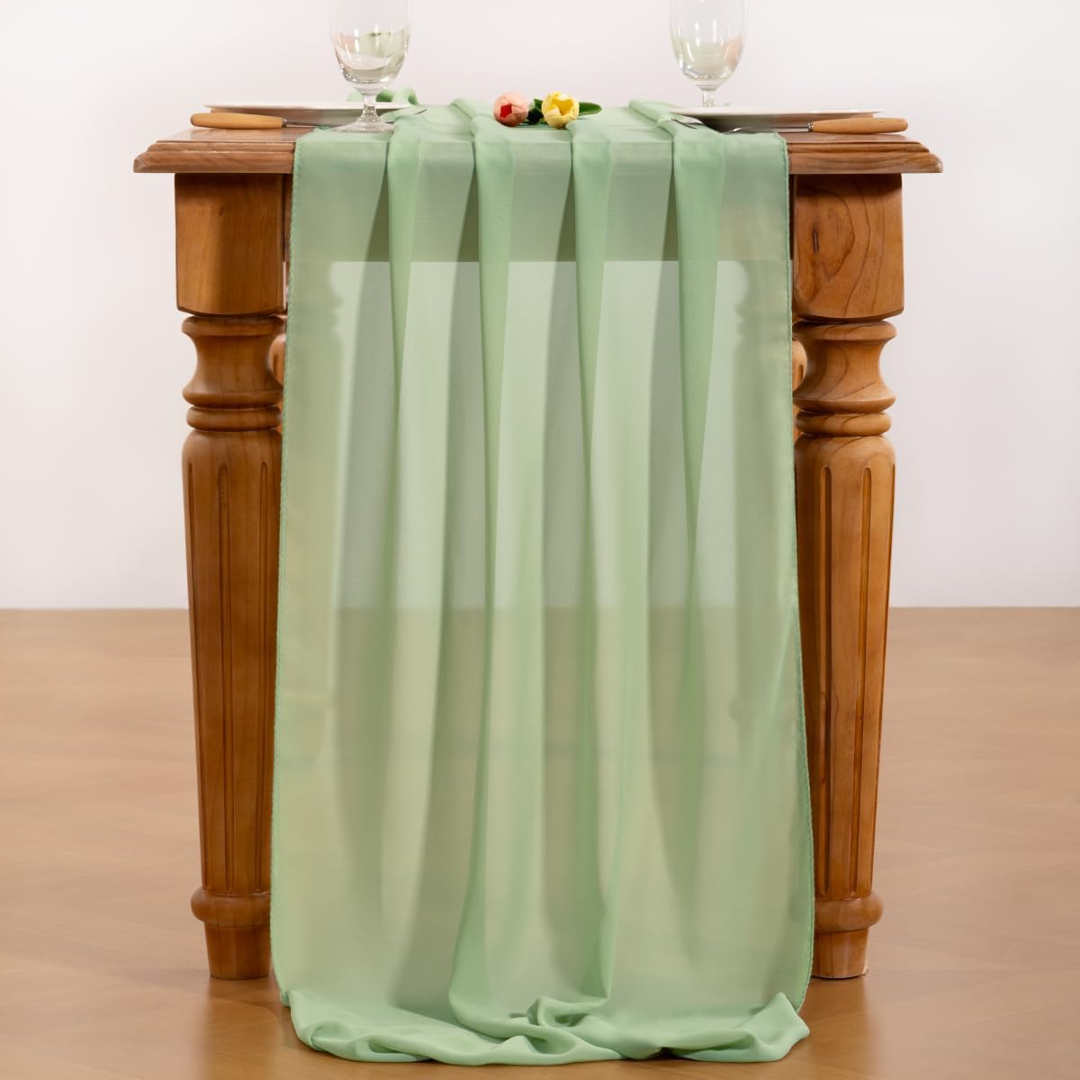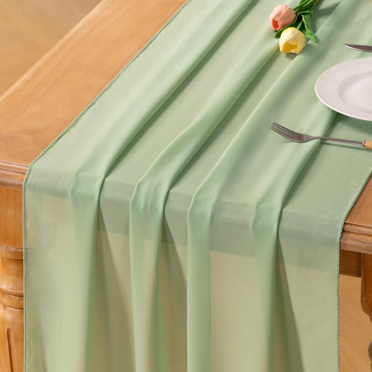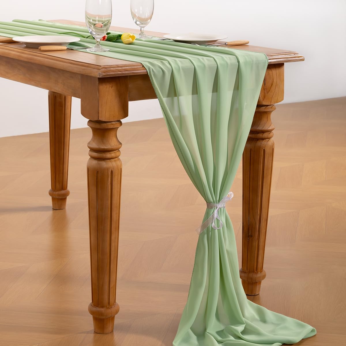 Sage Green Chiffon Table Runner Fall Thanksgiving