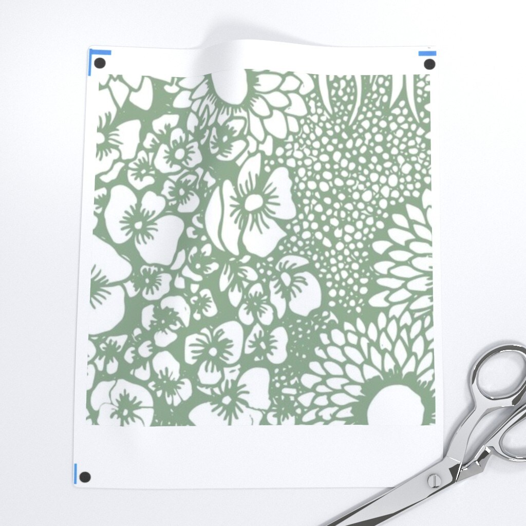 Sage Green Floral Monochrome Botanical Peaceful Nature Large Scale Custom Pre-pasted Wallpaper by Spoonflower Pre-Pasted Wallpaper 2FT Wide