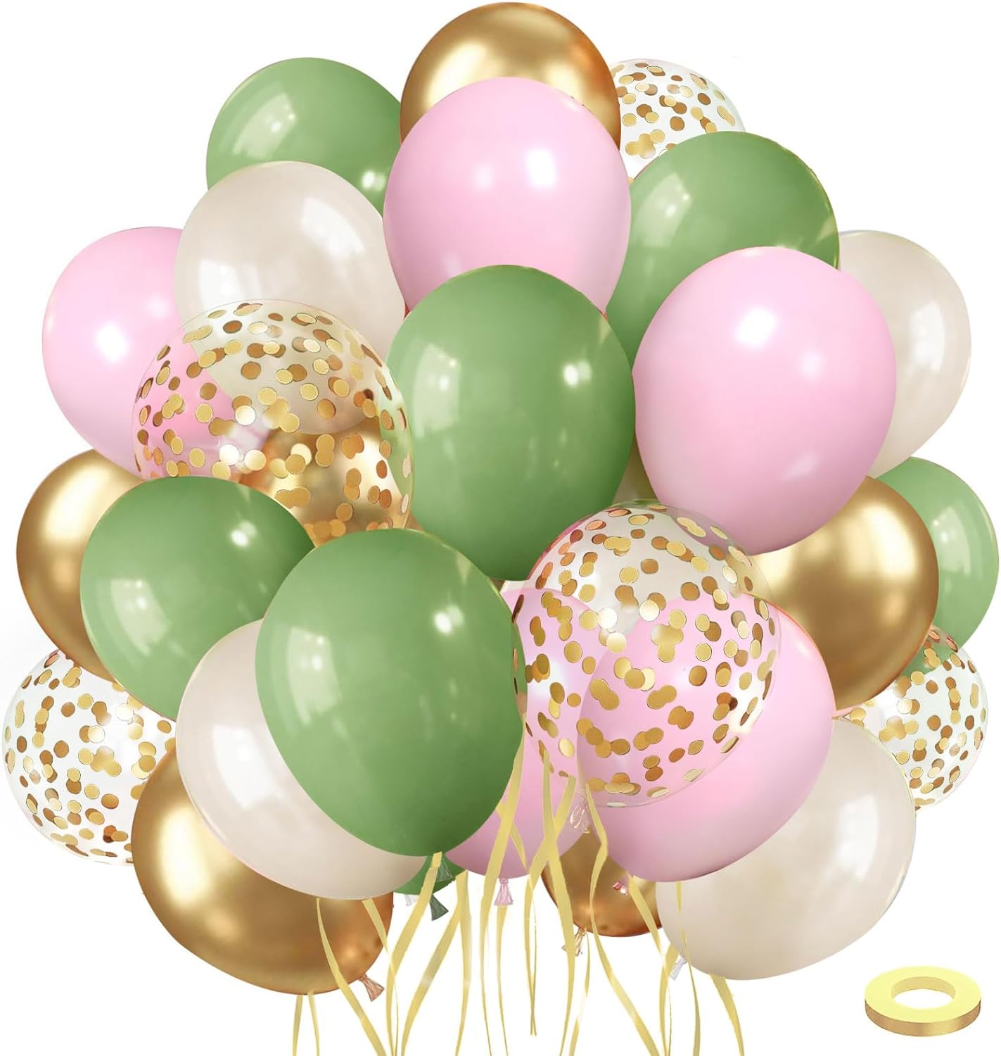 Sage Green Pink Balloons, 50pcs Olive Green Pastel Pink Sand White Metallic Gold Balloons
