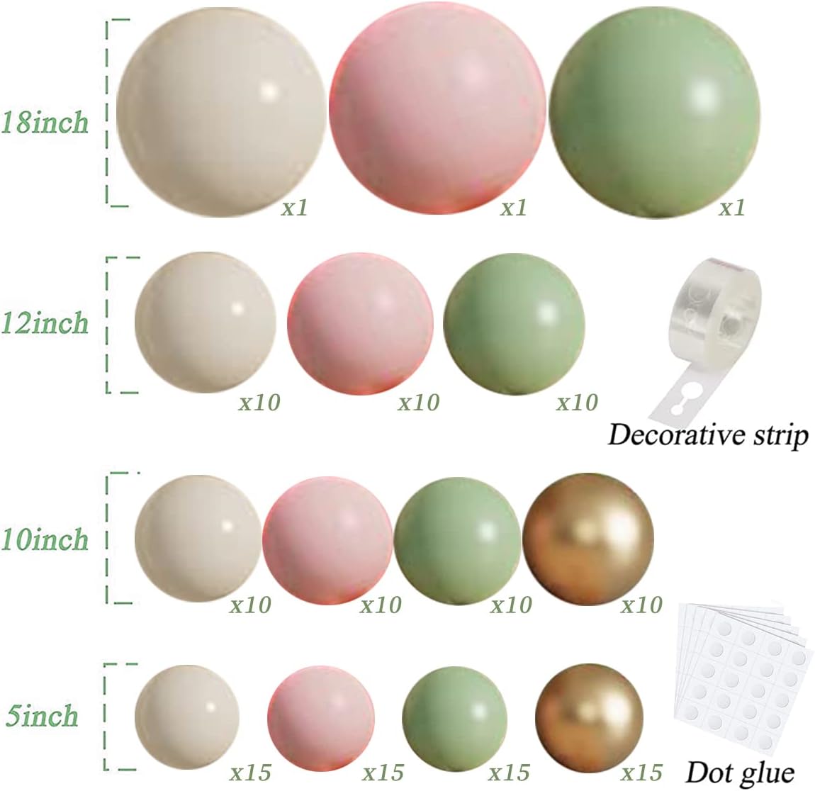 Sage Green Pink Balloons Garland Kit,133pcs Olive Green Blush Pink Sand White Metallic Gold Balloons for Girl Baby Shower Bridal Shower Wedding Birthday Jungle Safari Woodland Party Decorations…