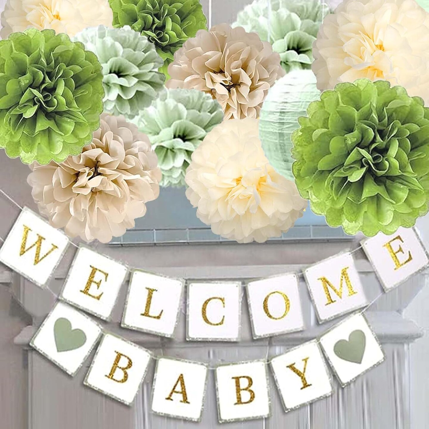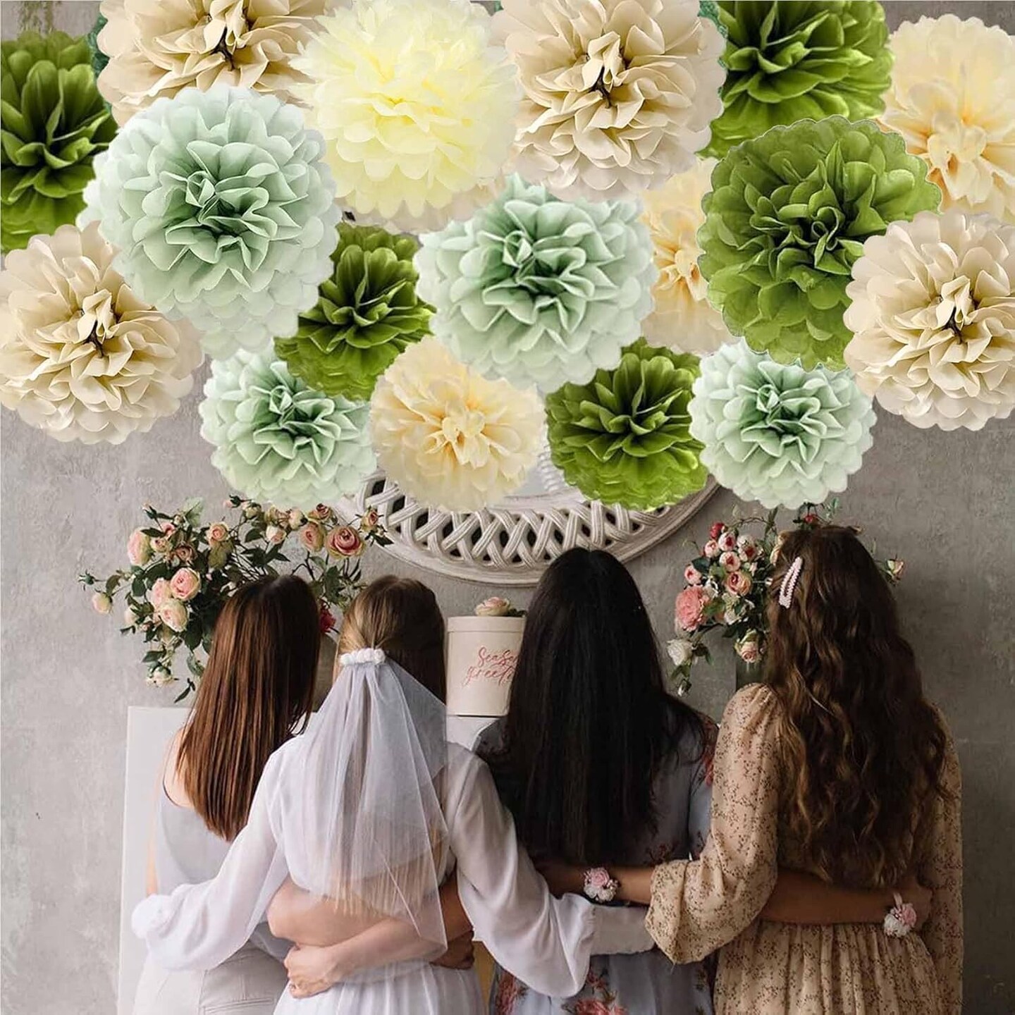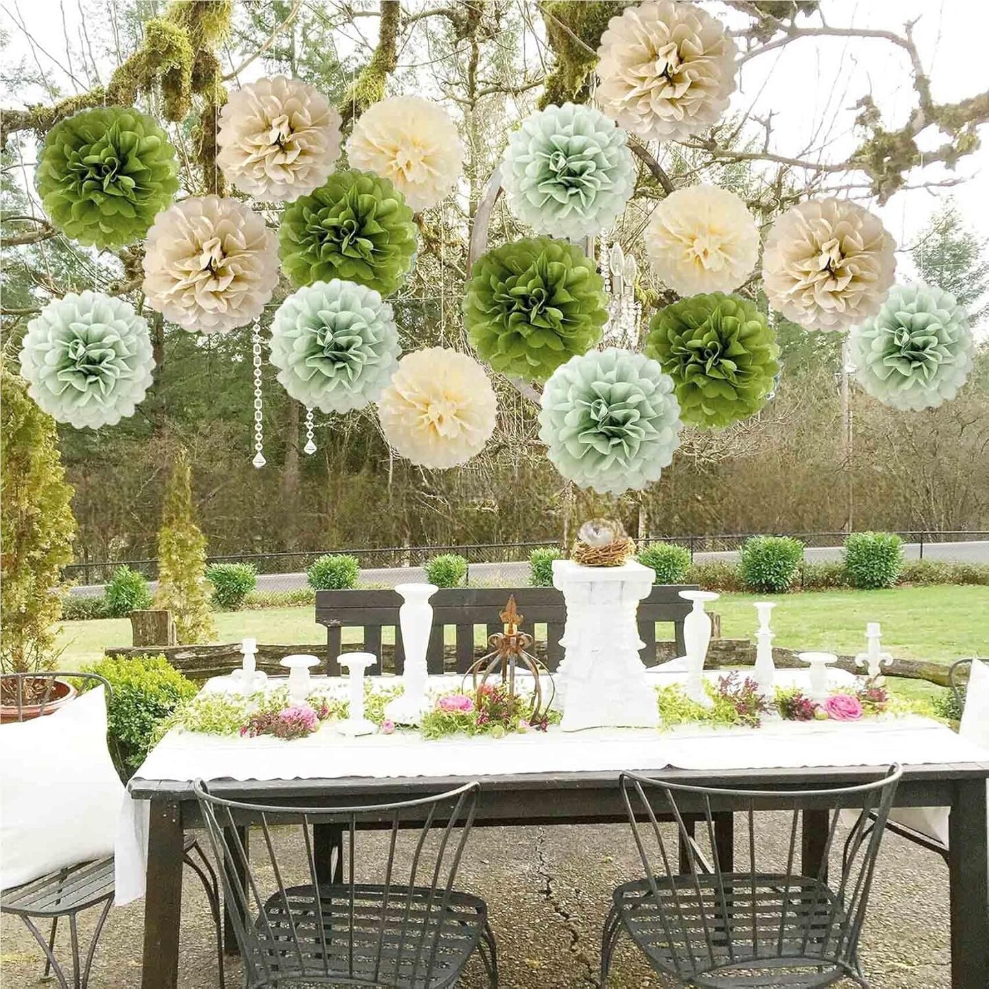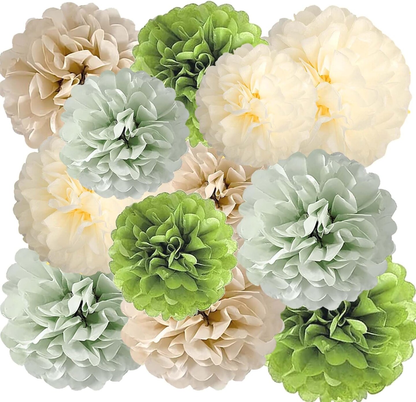 Sage Green Tissue Paper Pom Poms 12Pcs(Sage Green)