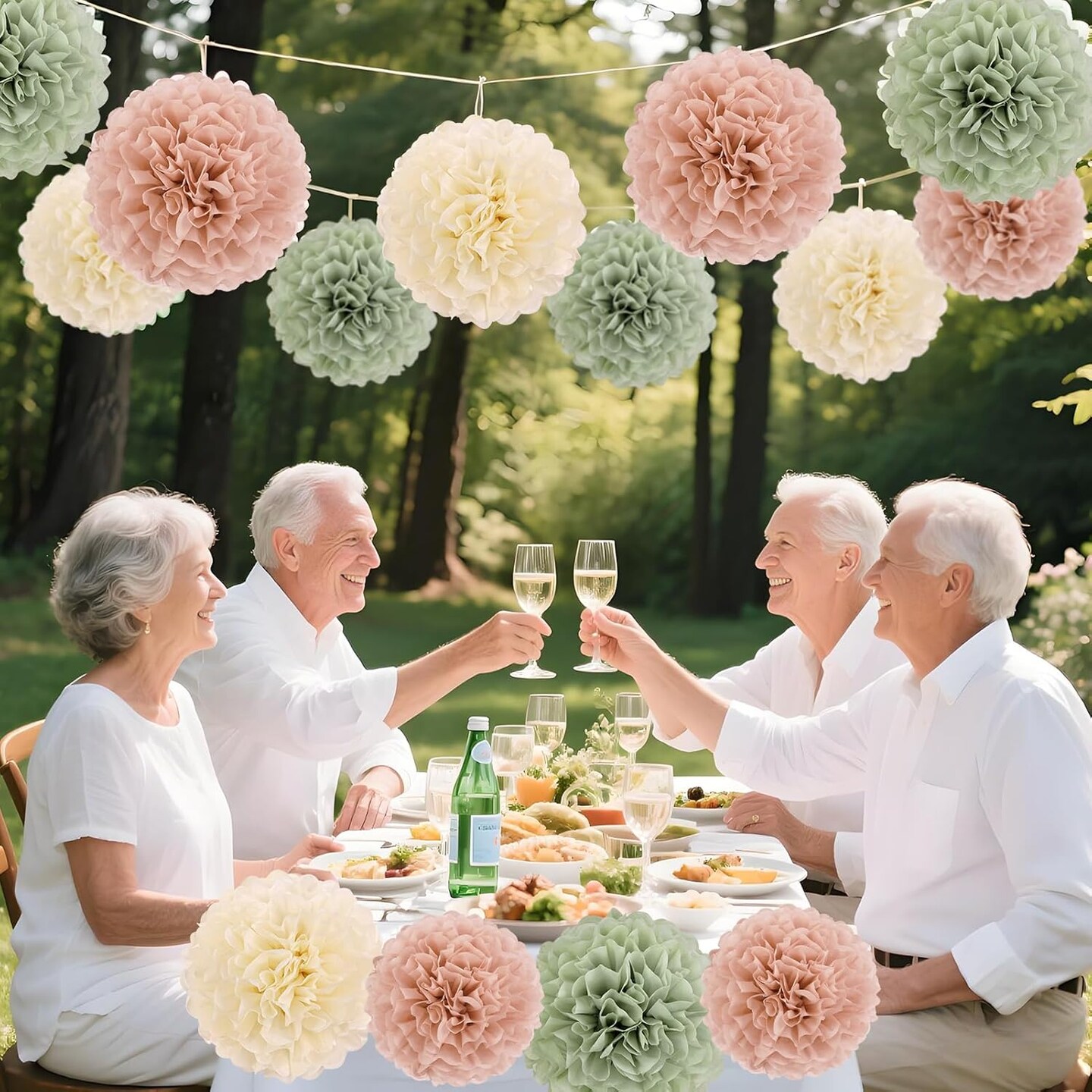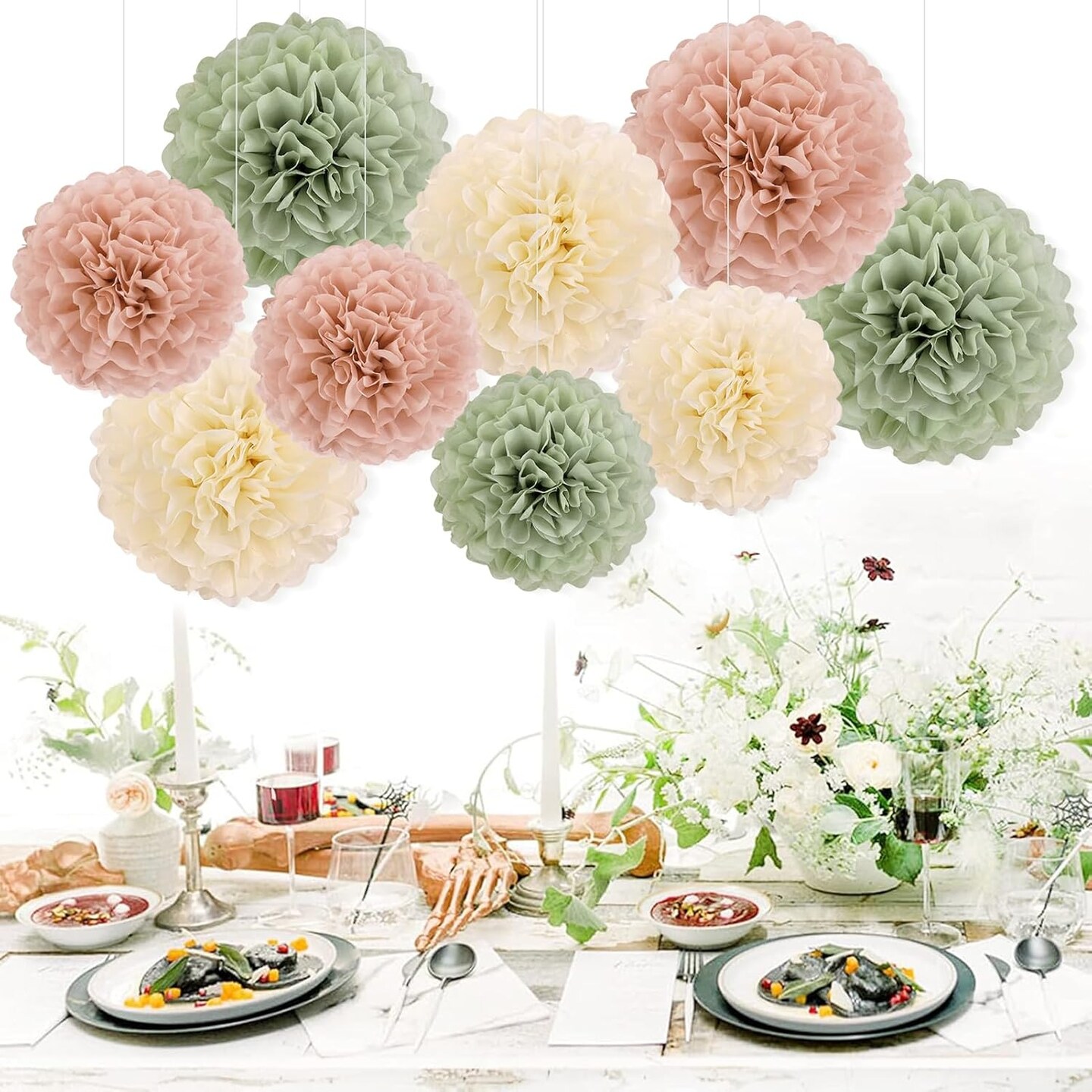 Sage Green Tissue Pom Poms Paper Flower(B-Dirty Pink,Green,Beige.)
