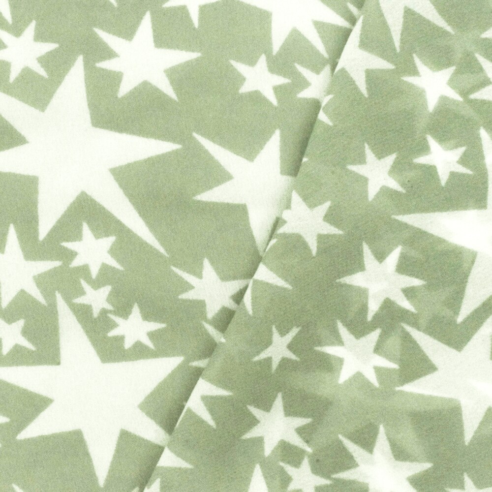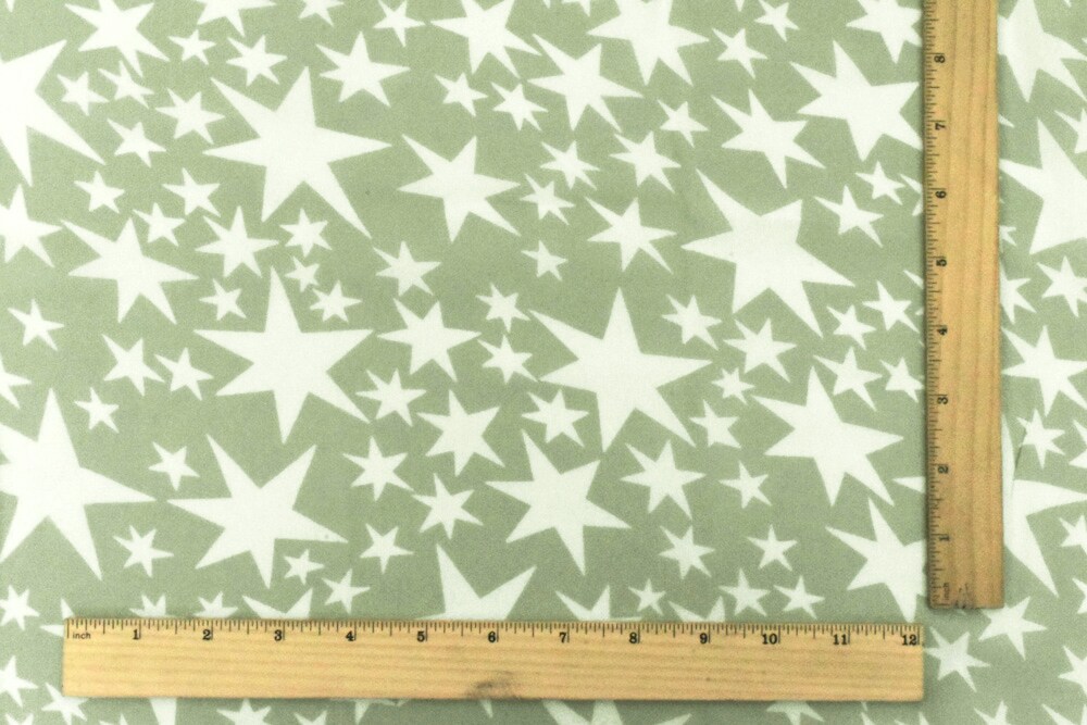 Sage Green-White Shooting Star Printed Rayon Georgette Woven Fabric By the Yard