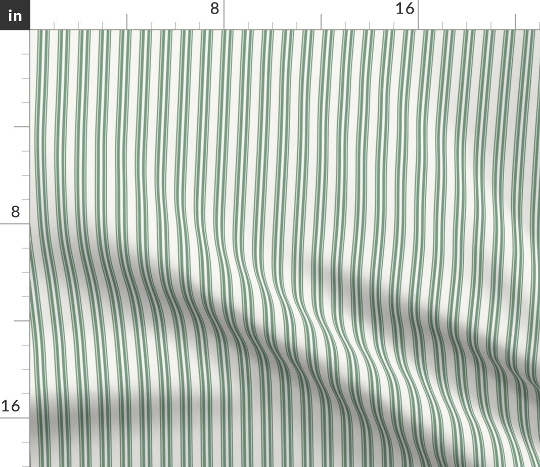 Sage Stripe Ticking Pin Traditional Classic Cream Green Country Rustic Farmhouse Custom Printed Fabric by Spoonflower Various Fabrics by the Yard or Fat Quarter