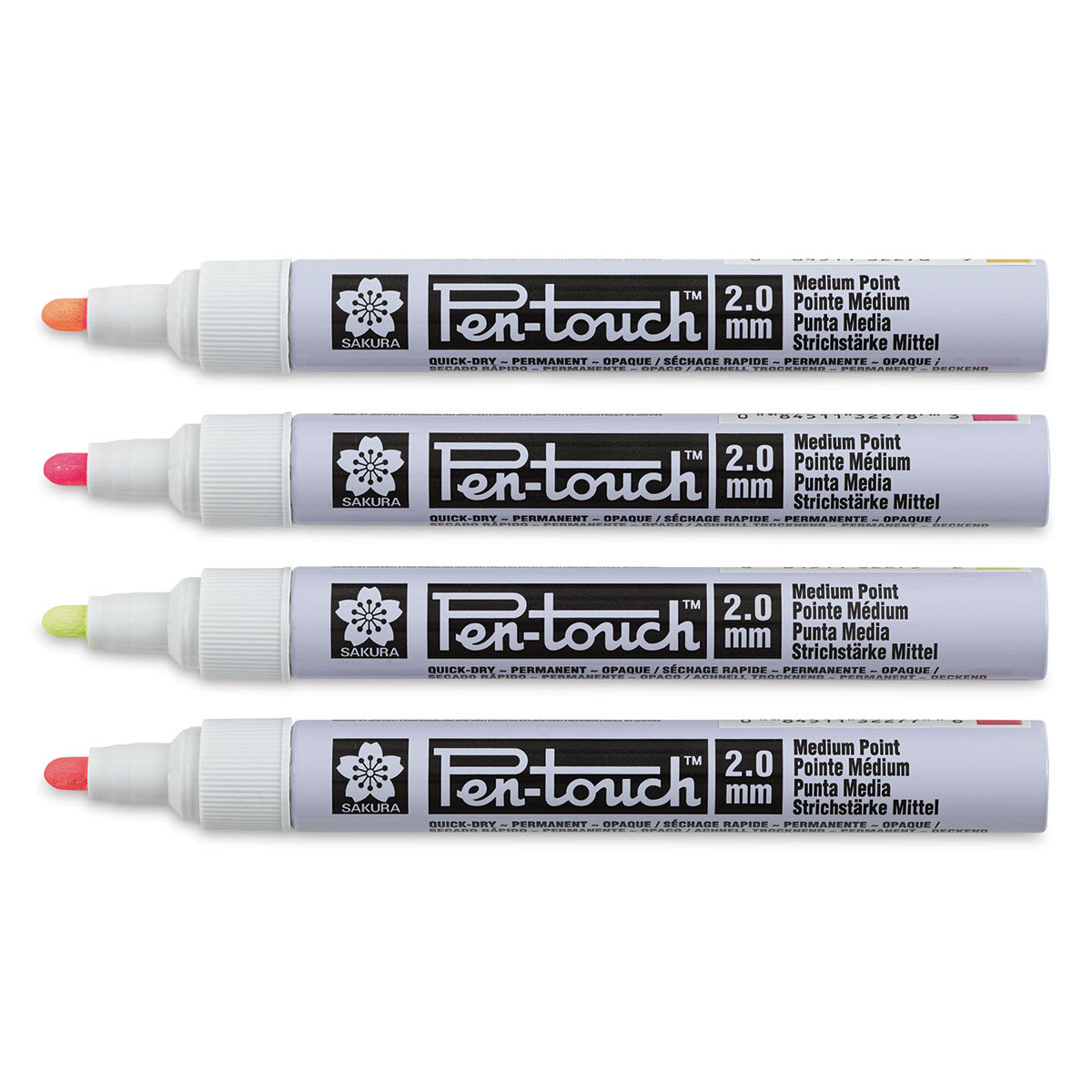 Sakura Pen-Touch Paint Markers - Set of 4, Fluorescent Colors, Medium Tip