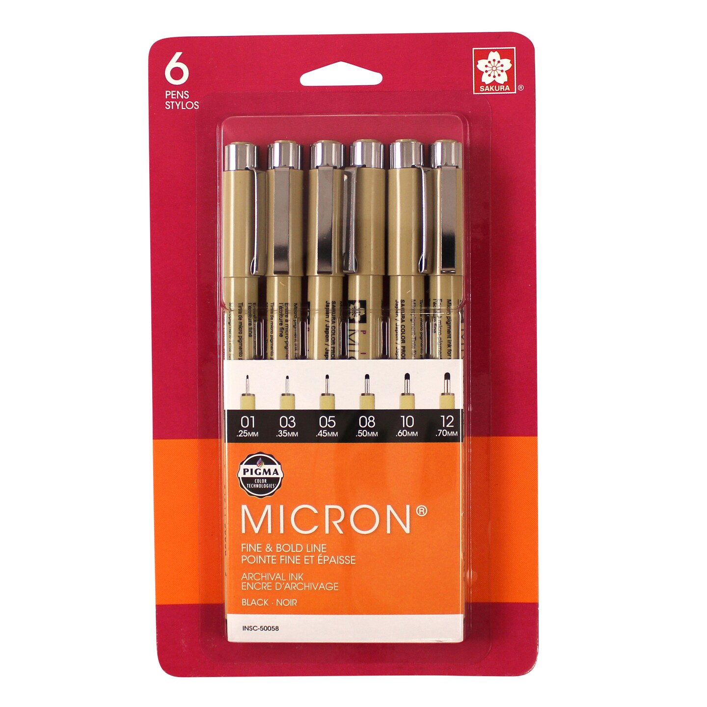 Sakura Pigma Micron Pen Set, Black, 6-Pens (01, 03, 05, 08, 10 & 12)