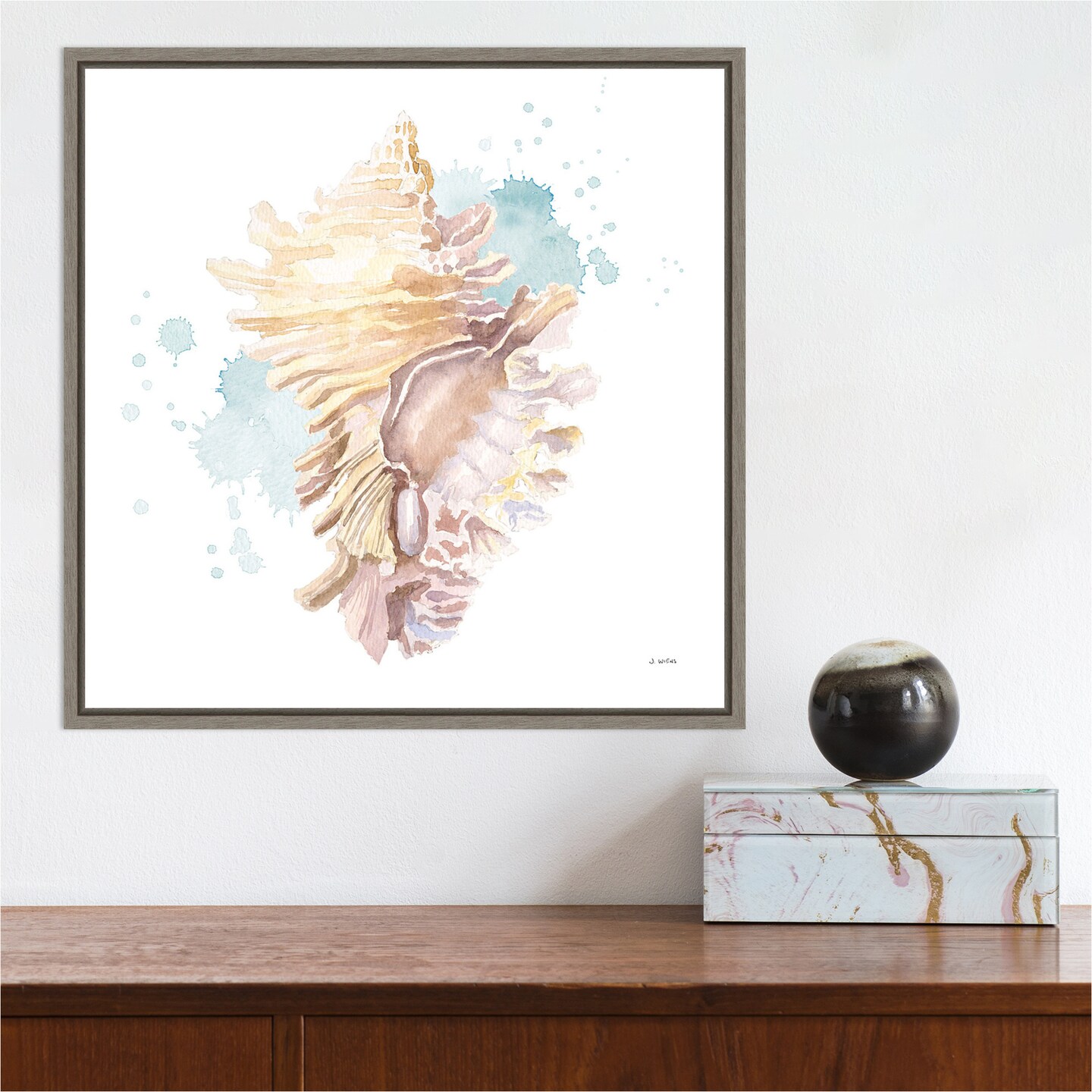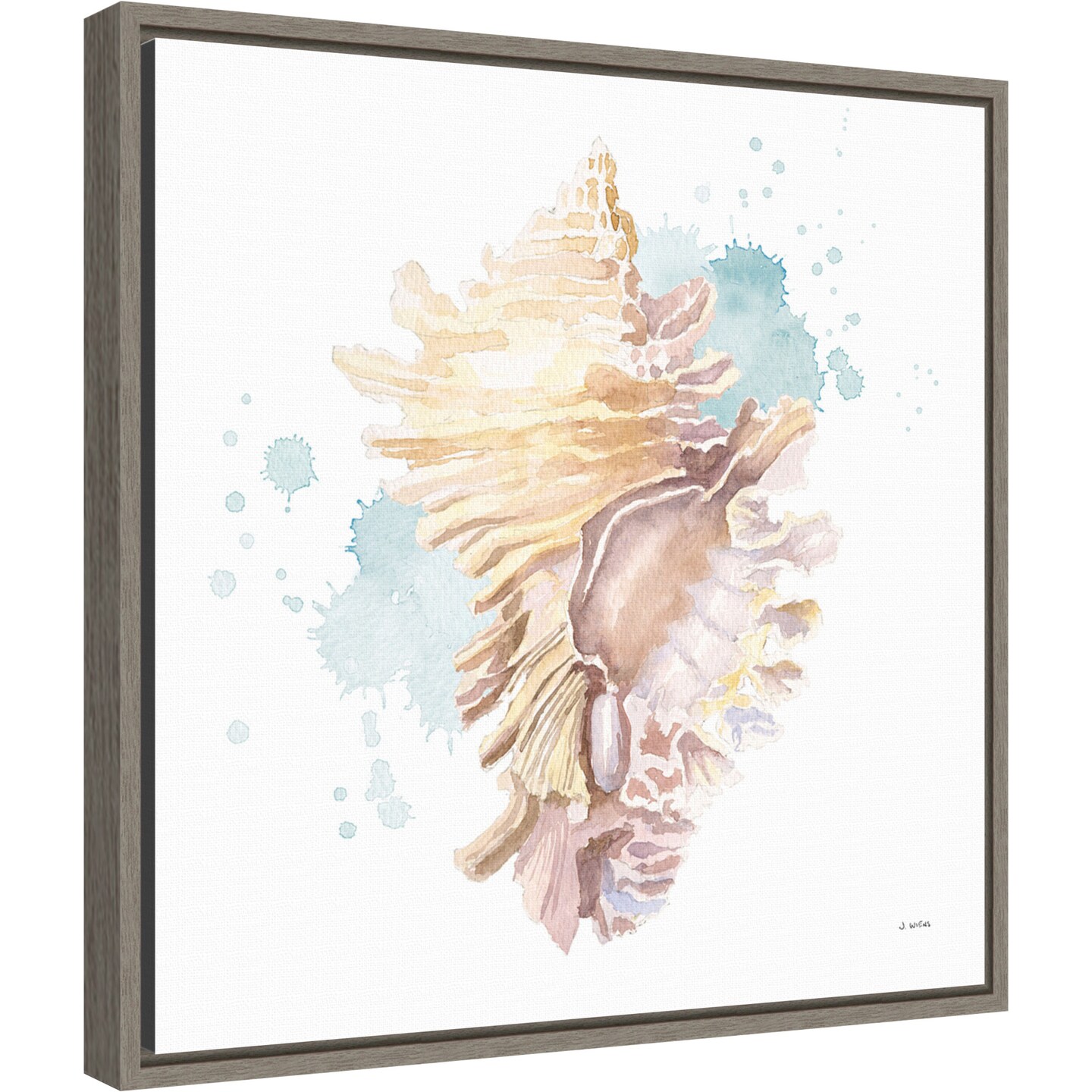 Salento Coast IV (Seashell) by James Wiens 16-in. W x 16-in. H. Canvas Wall Art Print Framed in Grey